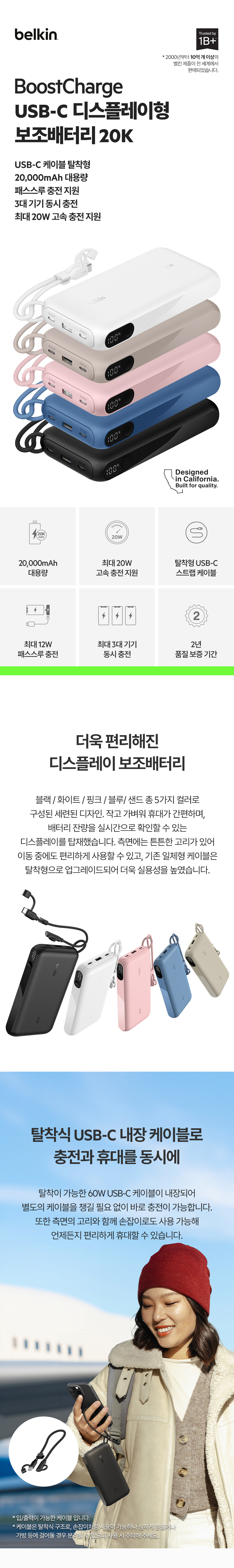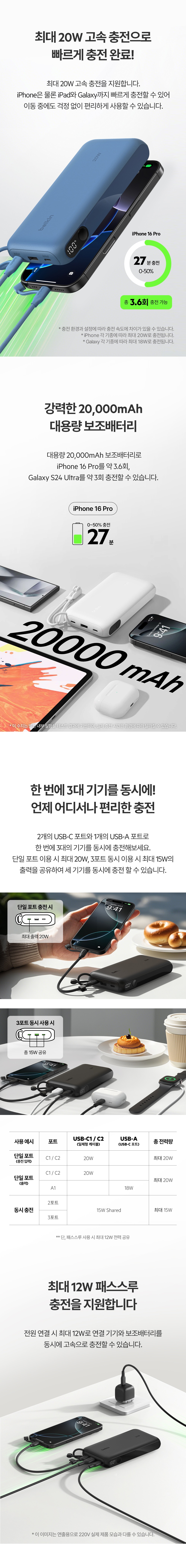 벨킨 20W 20000mAh 디스플레이 고속 충전 보조배터리 BPB028 블랙