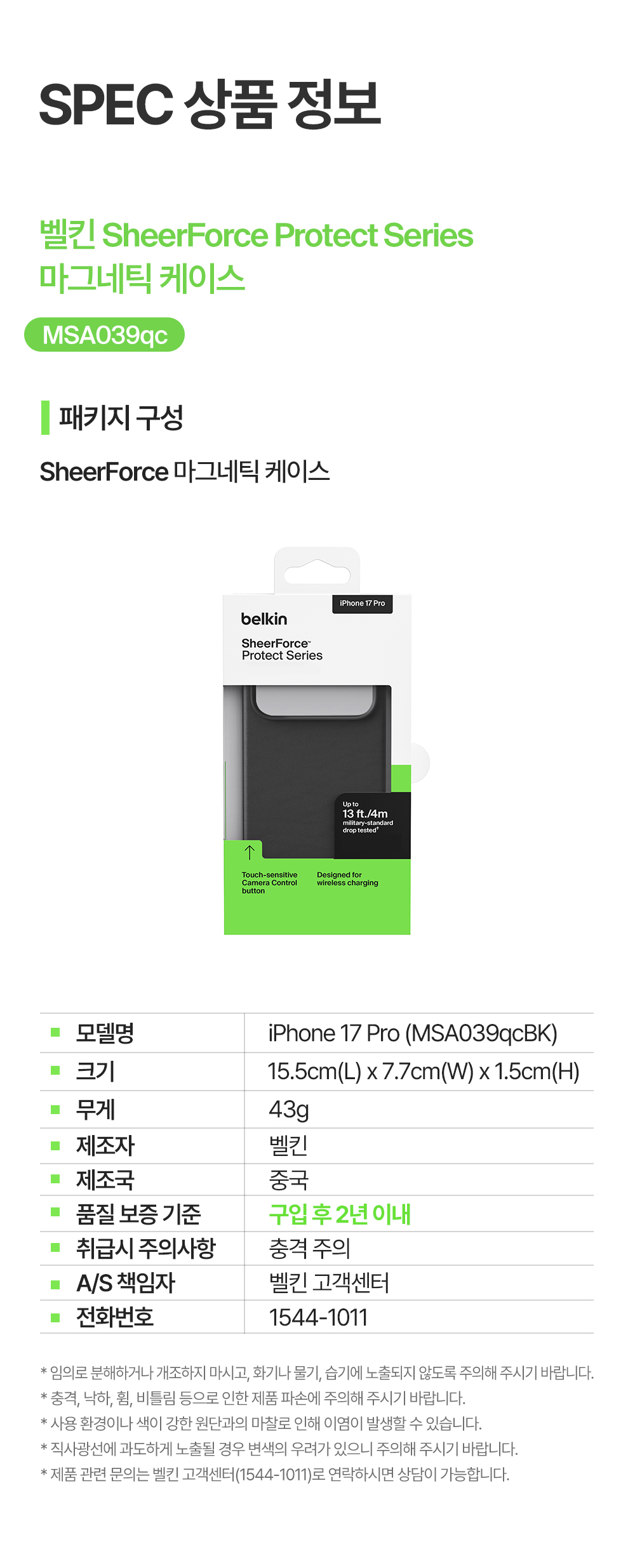 벨킨 아이폰17 프로 마그네틱 프로텍트 케이스 MSA039