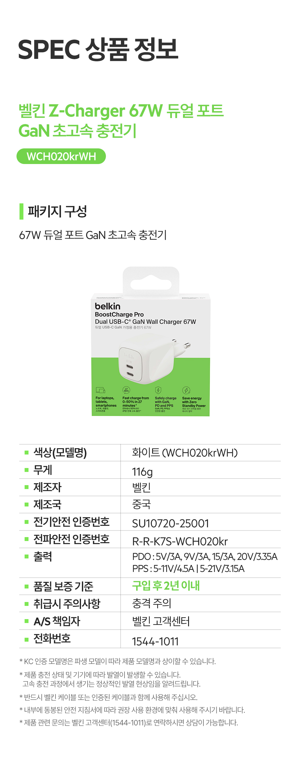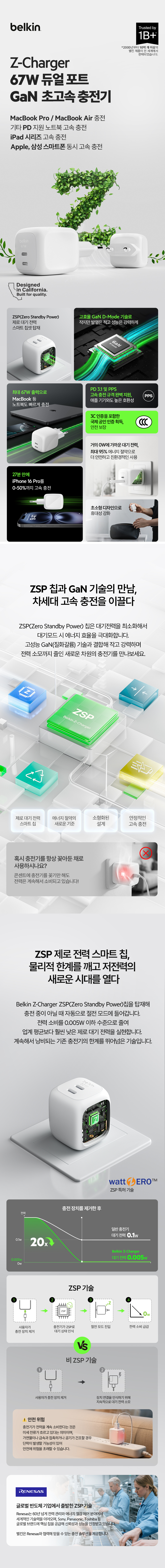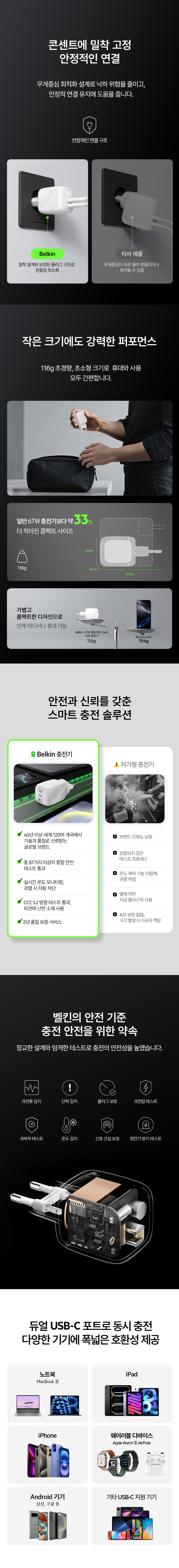 벨킨 67W 듀얼 C타입 GaN ZSP 초고속 충전기 WCH020