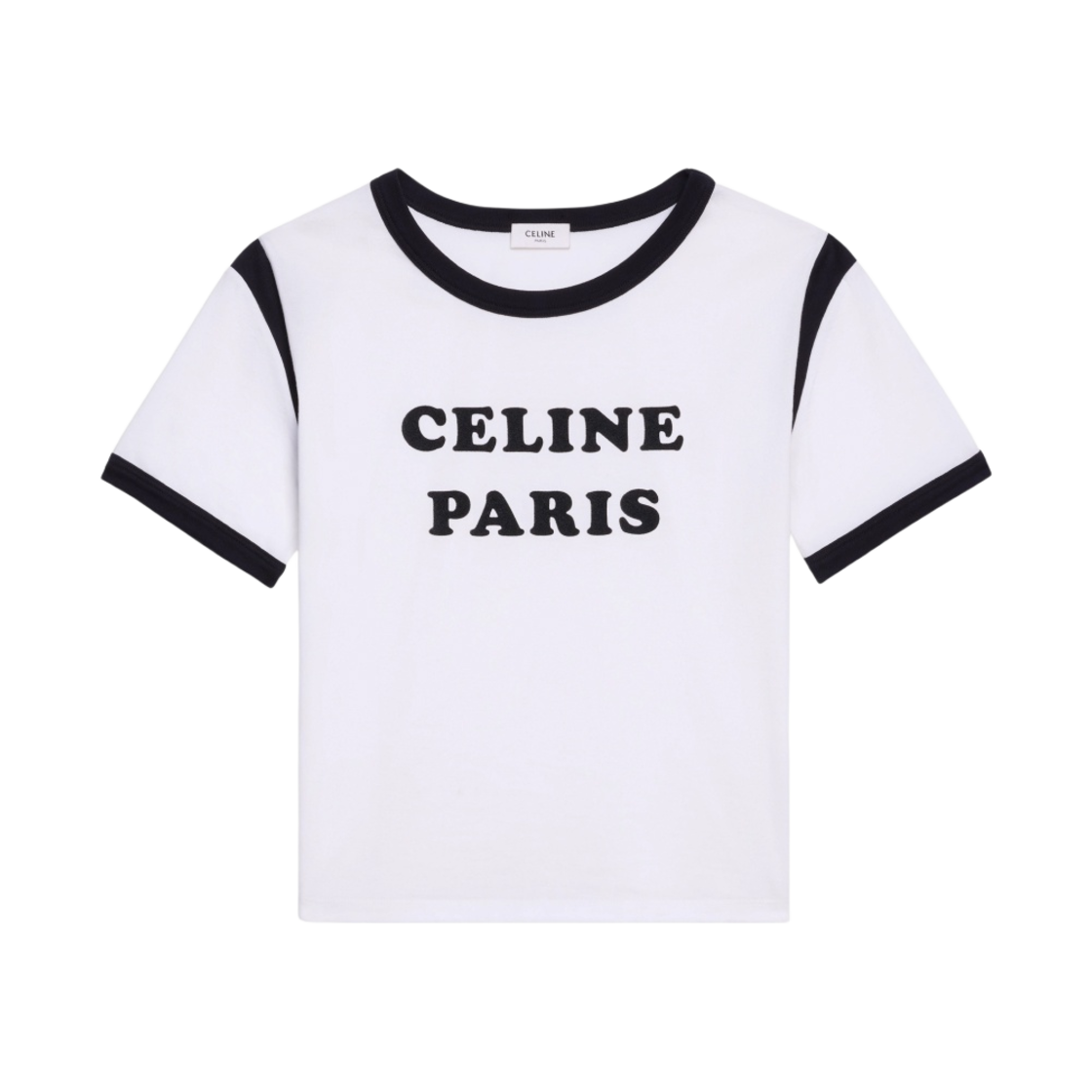 (W) Celine Paris Boxy T-Shirt in Cotton Jersey Ecru Black