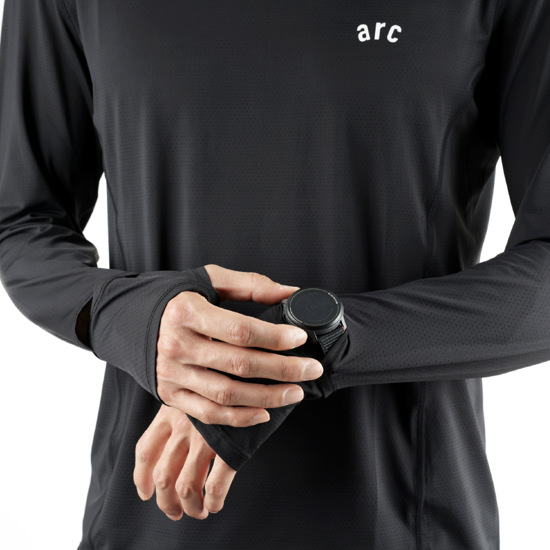 메쉬 홀이 전하는 통기성과 우수한 흡한속건 기능을 갖춘 쿨브리즈 티셔츠 Thumb Hole – 손가락을 넣어 보온 및 고정력을 제공하는 썸홀 Watch Hole – 스마트워치를 볼 수 있는 워치홀 Quick drying – 속건성 Sweat wicking – 흡건성 Breathable – 뛰어난 통기성 UPF – _x0008_자외선 차단 Flat-seam Construction – 피부 자극을 줄이는 무시봉제 방식 Silicone Printing details – 신축성 소재에 내구성이 강한 실리콘 프린팅 3M Reflective detail – 3M 리플렉티브 요소