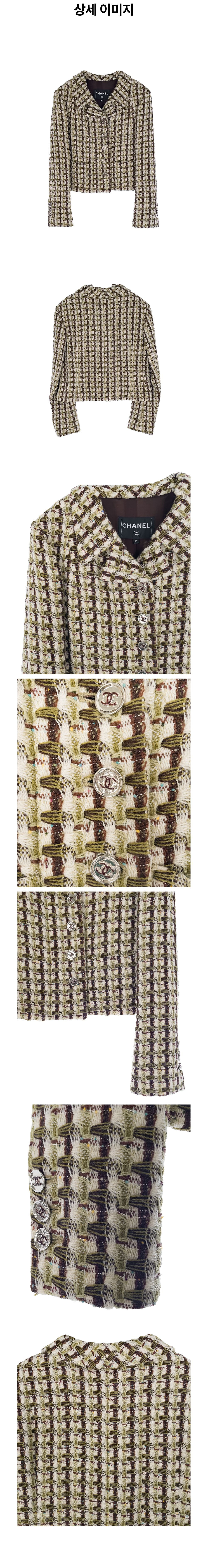 샤넬 23A 울 크롭 트위드 자켓 34 에크루/카키/브라운(3ET2026)