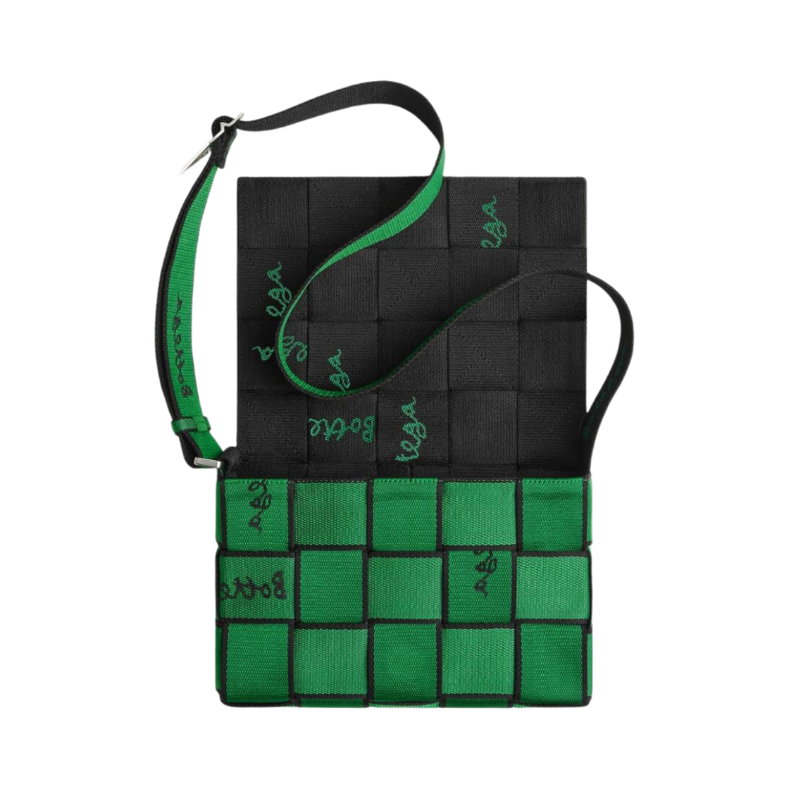 Bottega Veneta Reverse Logo Webbing Small Crossbody Bag Parakeet Black