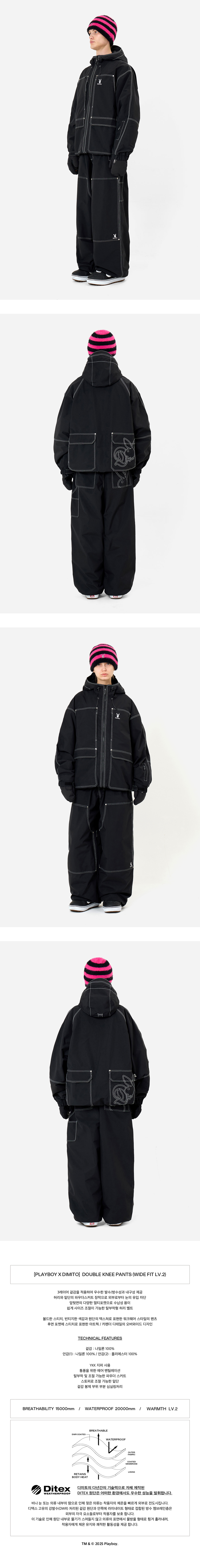 [디미토 X 플레이보이] 더블 니 팬츠 와이드 핏 레벨 2 블랙
