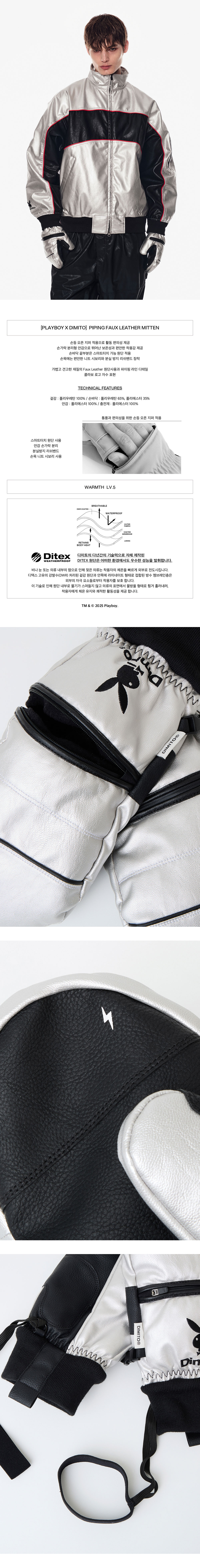 [디미토 X 플레이보이] 파이핑 폭스 레더 미튼 메탈 그레이