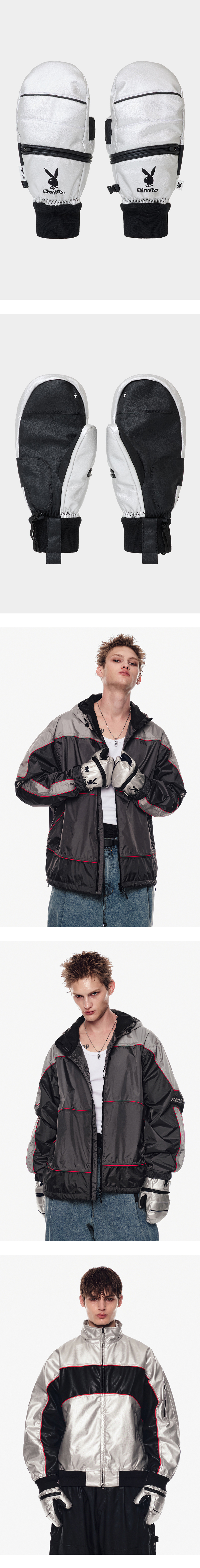 [Dimito X PLAYBOY] Piping Faux Leather Mitten Metal Grey