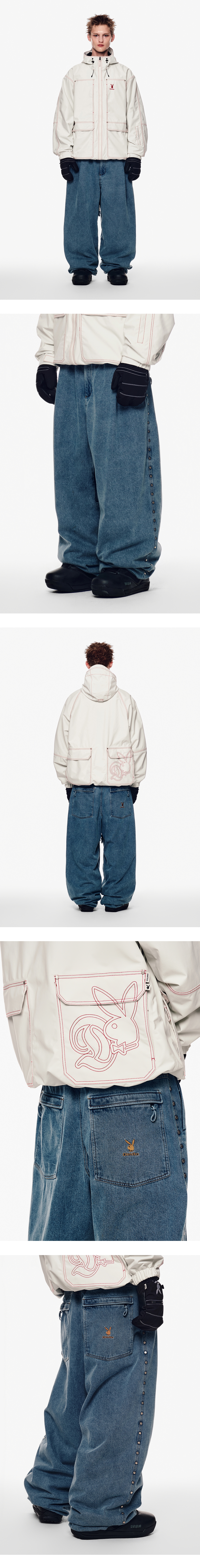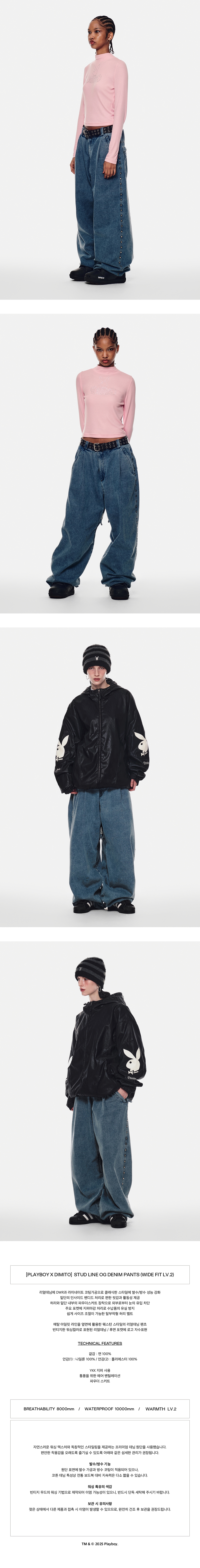 [Dimito X PLAYBOY] Stud Line Og Denim Pants Wide Fit Lv.2 Washed Blue