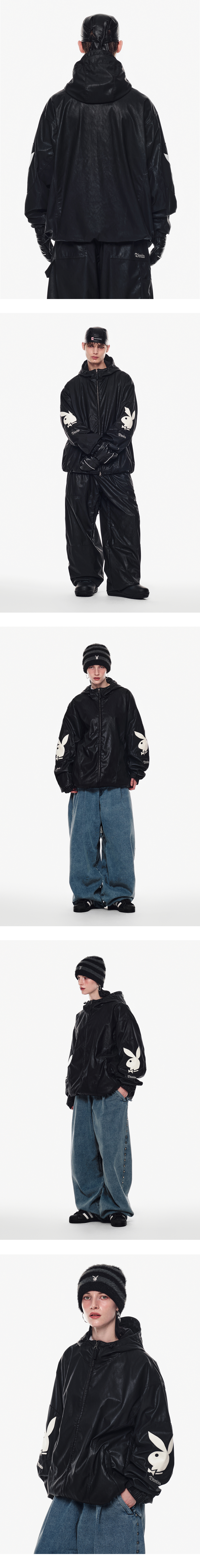 [Dimito X PLAYBOY] Bunny Faux Leather Jacket Black