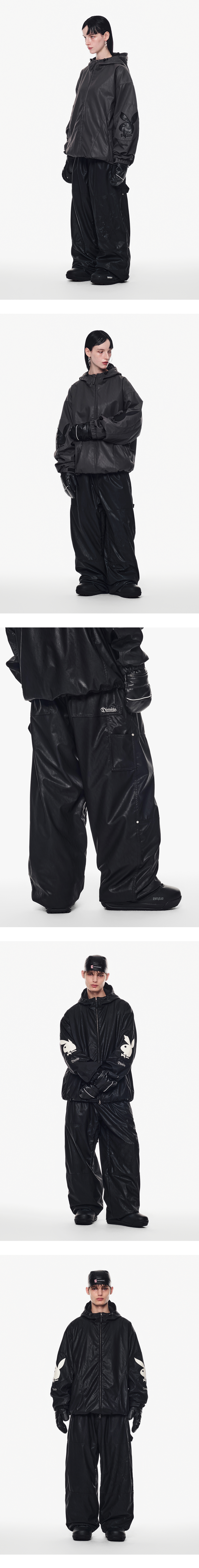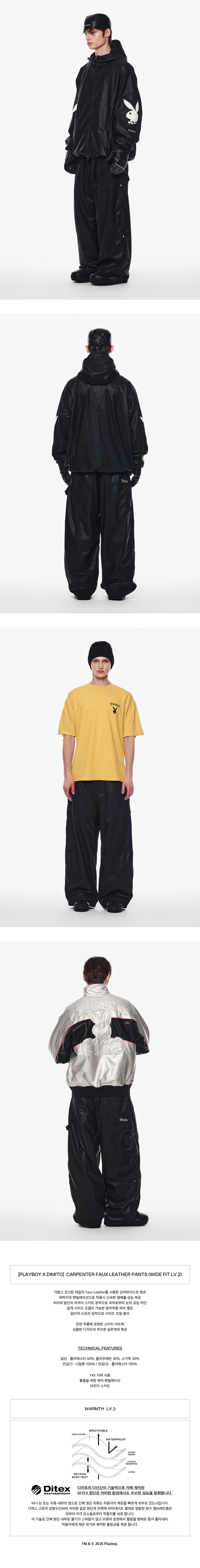 [디미토 X 플레이보이] 카펜터 폭스 레더 팬츠 와이드 핏 레벨 2 블랙