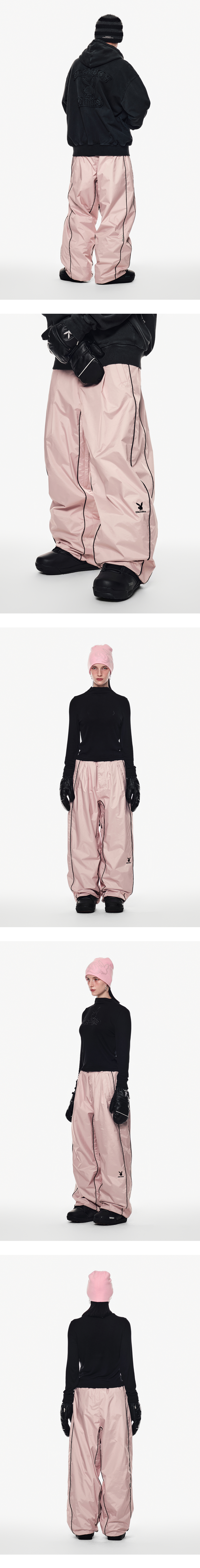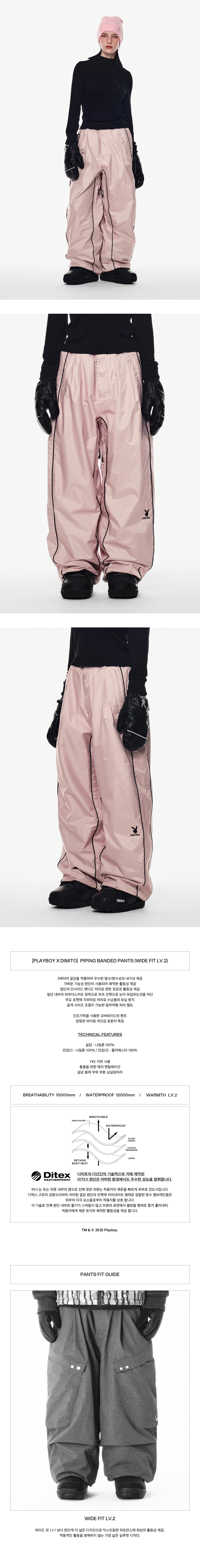 [디미토 X 플레이보이] 파이핑 밴디드 팬츠 와이드 핏 레벨 2 베이비 핑크