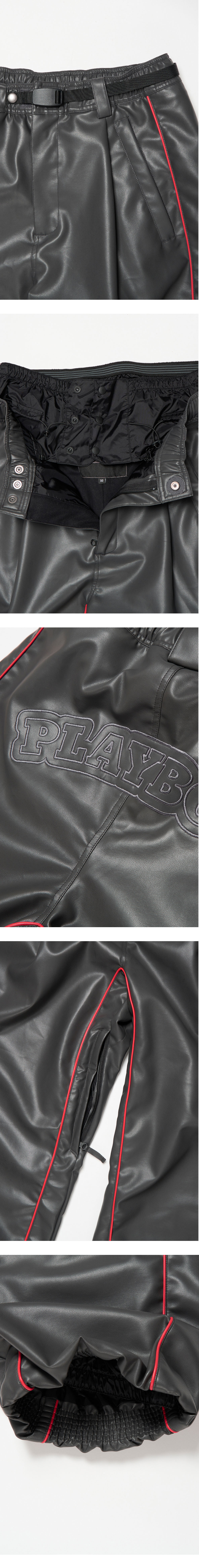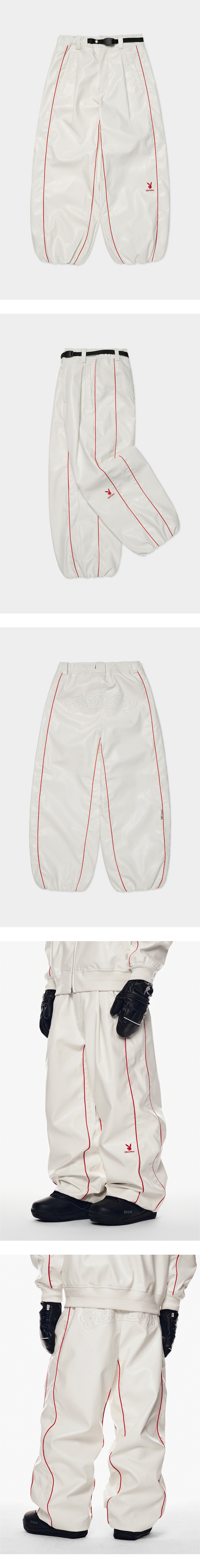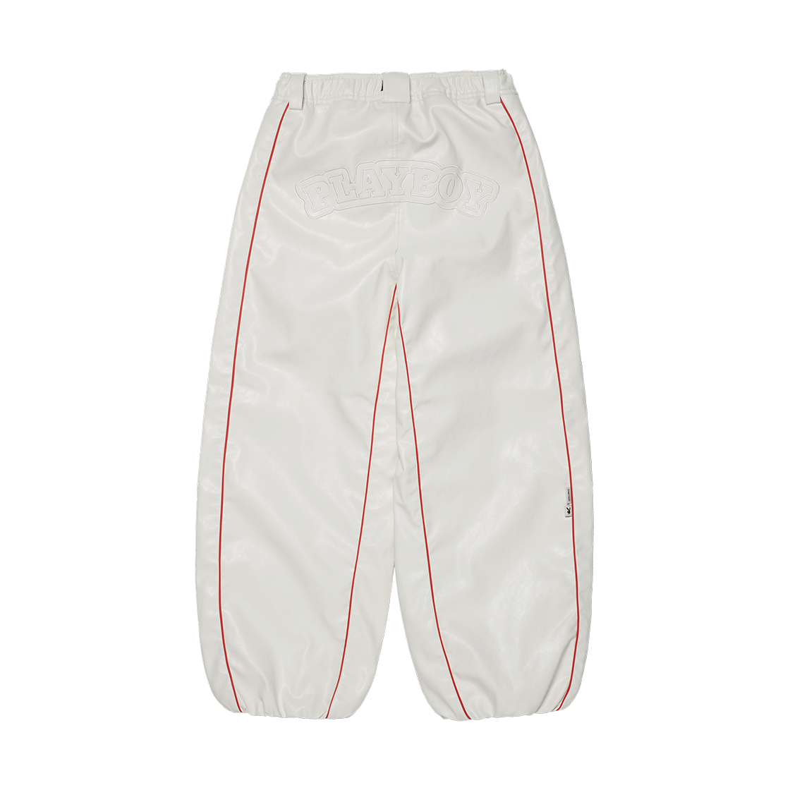 [Dimito X PLAYBOY] Piping Banded Faux Leather Pants Wide Fit Lv.2 White