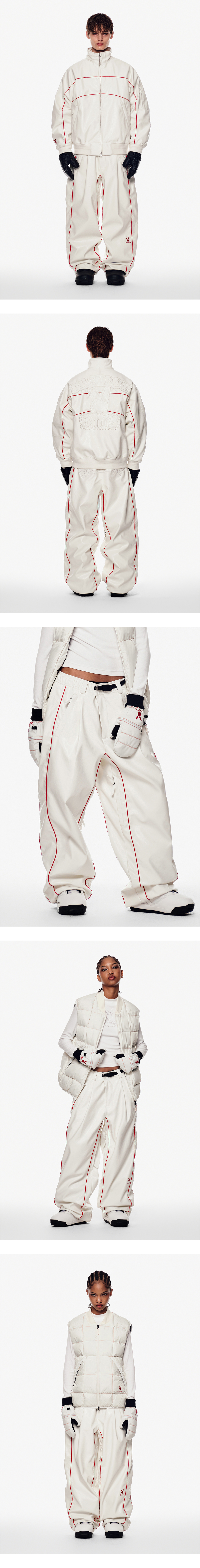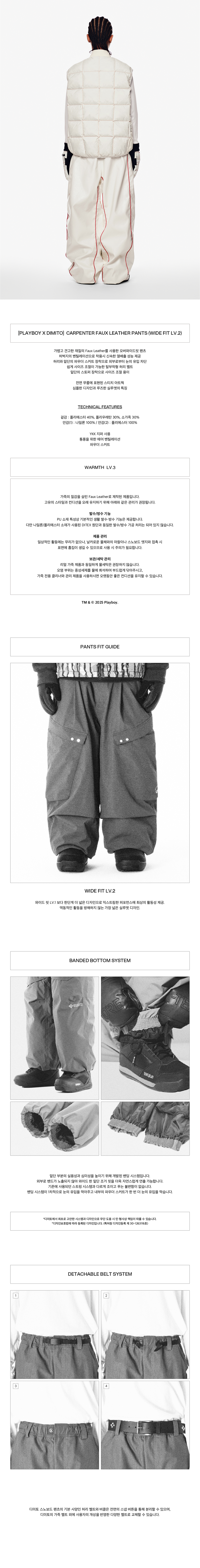 [디미토 X 플레이보이] 파이핑 밴디드 폭스 레더 팬츠 와이드 핏 레벨 2 화이트