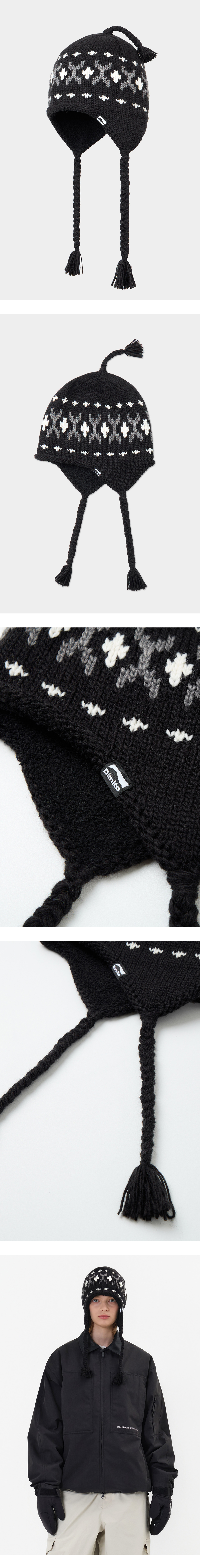 디미토 심플 크로켓 이어 플랩 비니 블랙