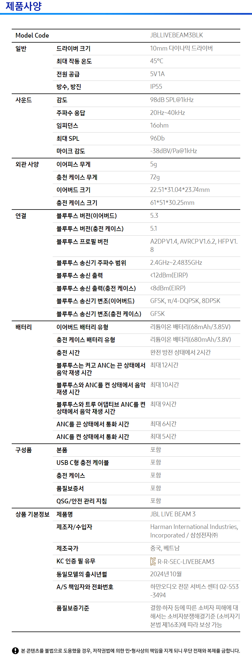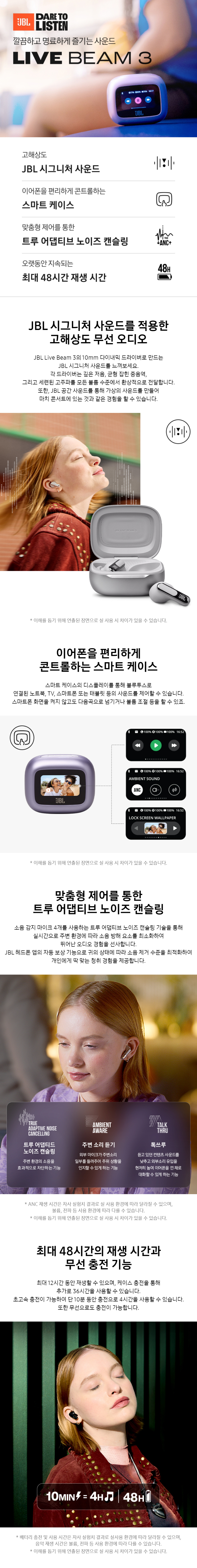 제이비엘 라이브 빔3 노이즈캔슬링 블루투스 이어폰 퍼플