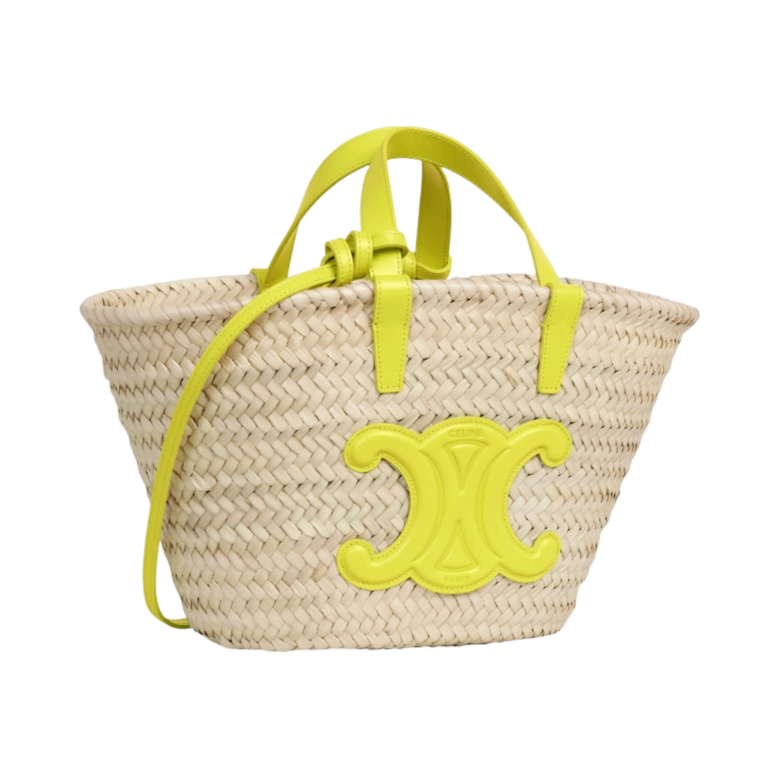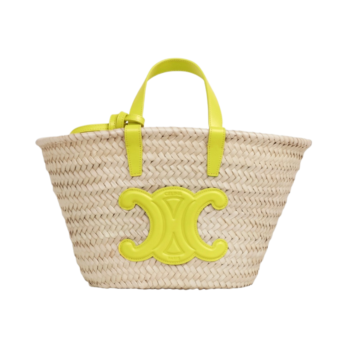 Celine Teen Triomphe Celine Classic Panier in Palm Leaves and Calfskin Anis