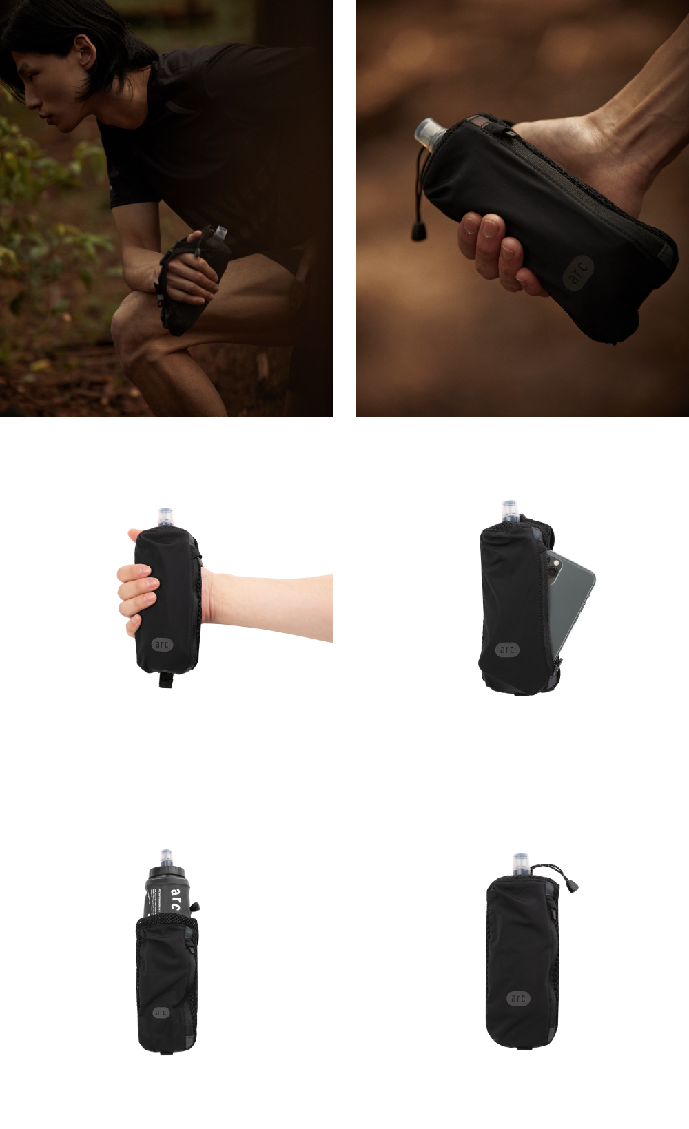 러닝 시 물병을 넣고 손에 들고 뛸 수 있는 핸드헬드 보틀 파우치 Y Handle to grip – 파지하기 좋은 Y 손잡이 Stretchable pocket – 신축성있는 포켓 Reflective Details – 로고 및 리플렉티브 디테일 Suitable for 350ml Soft Flask and 500ml PET – 350ml 소프트 플라스크와 500ml PET 물병 파지 가능 Adjustable String & Webbing- 길이 조절이 가능한 스트링과 나일론 웨빙