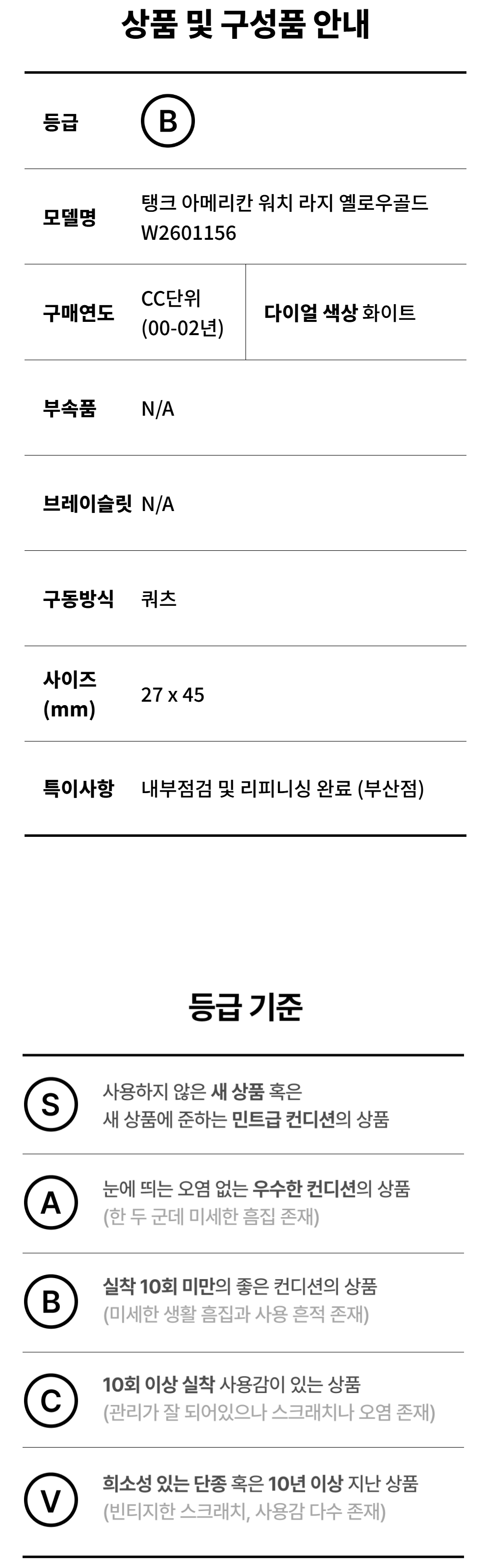 까르띠에 탱크 아메리칸 워치 라지 옐로우골드 W2601156