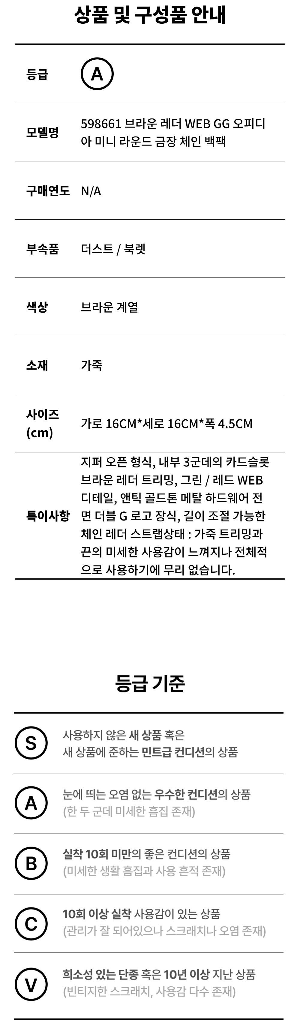 구찌 598661 브라운 레더 WEB GG 오피디아 미니 라운드 금장 체인 백팩