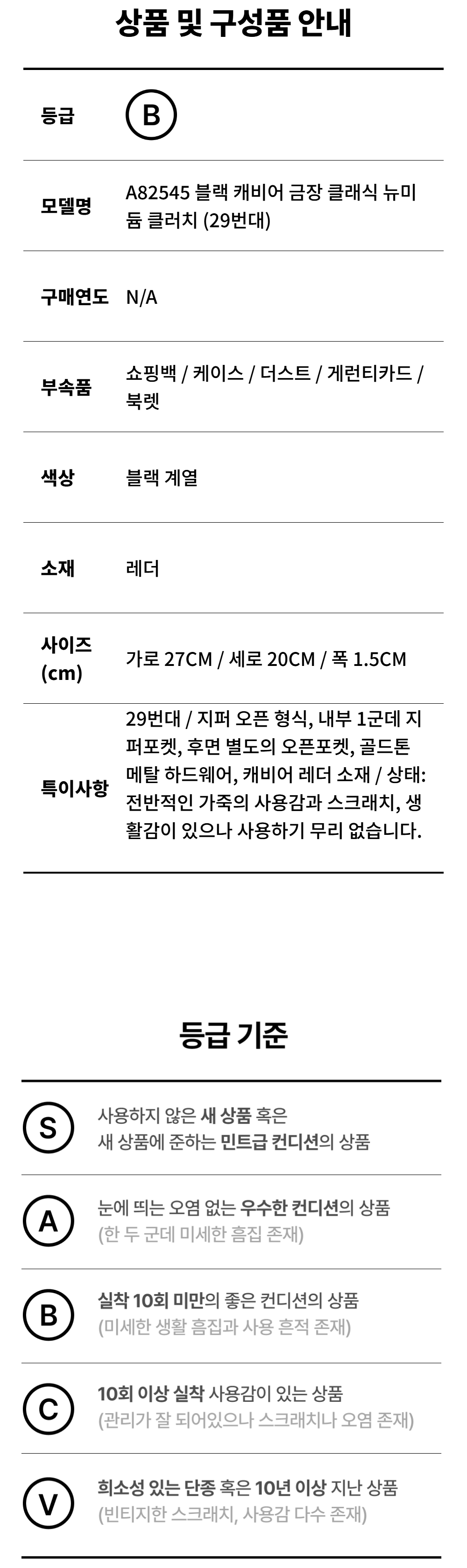 샤넬 A82545 블랙 캐비어 금장 클래식 뉴미듐 클러치 (29번대)