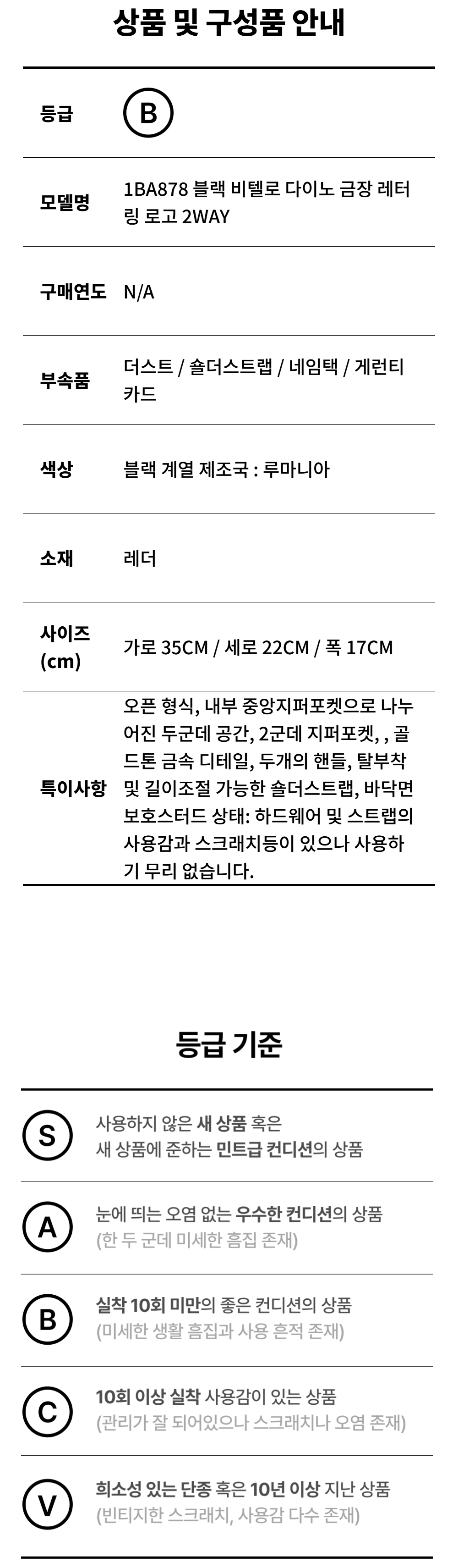 프라다 1BA878 블랙 비텔로 다이노 금장 레터링 로고 2WAY