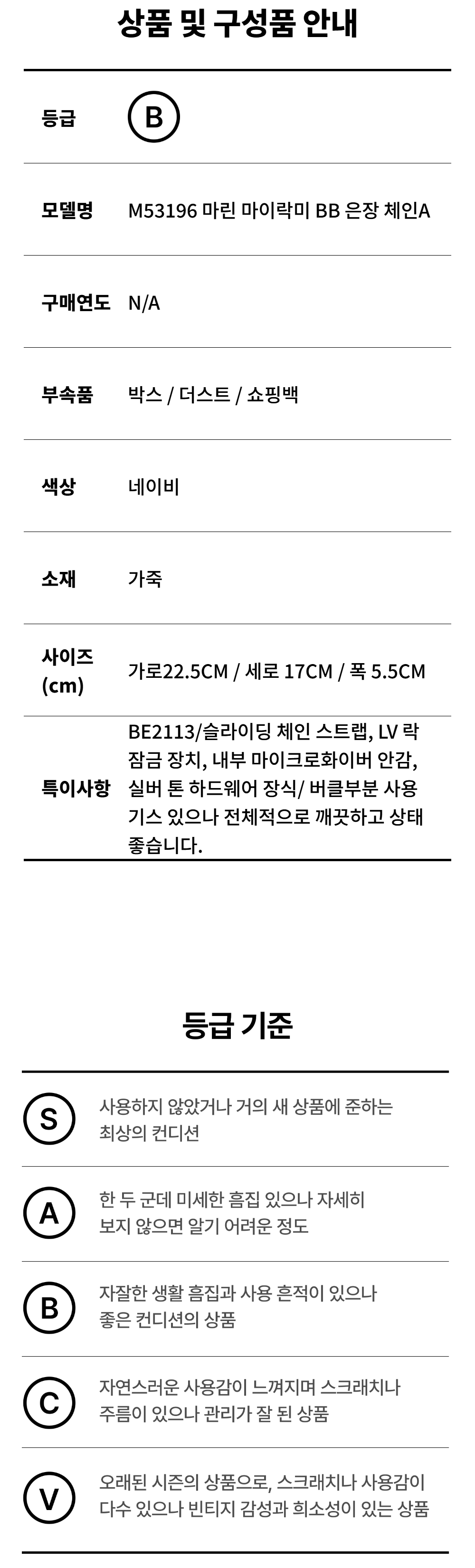 루이비통 마린 마이락미 BB 은장 체인