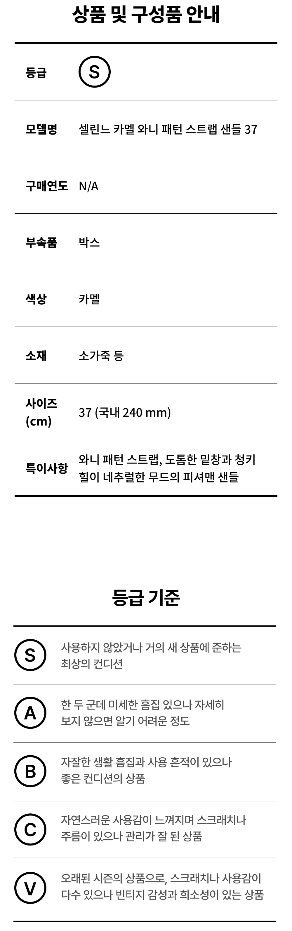 셀린느 카멜 와니 패턴 스트랩 샌들 37