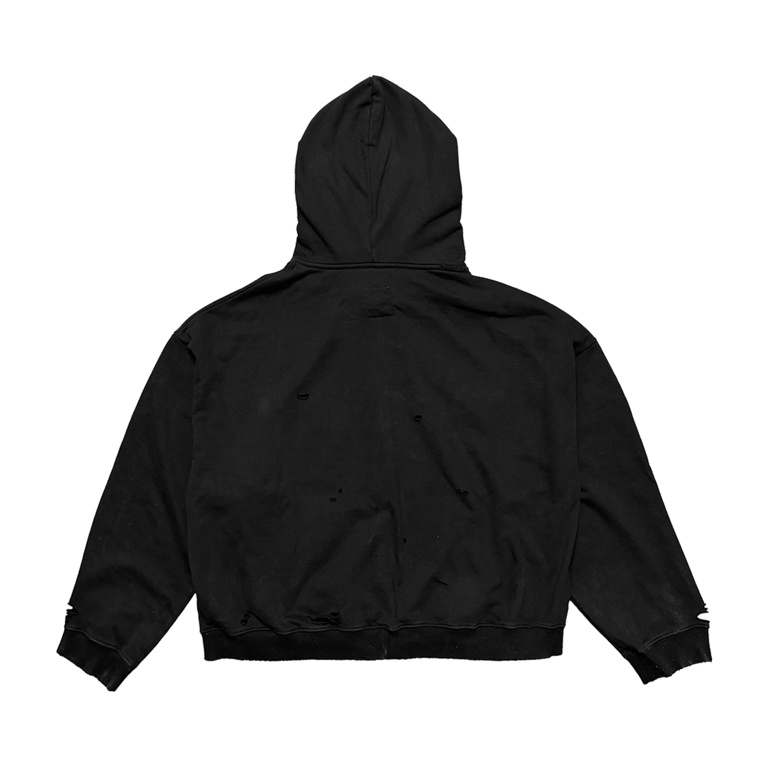 *색상은 제품컷과 가장 유사하며 해상도에 따라 차이가 있을 수 있습니다. *데미지 디테일을 유지하기 위해, 드라이클리닝 혹은 울세탁을 권장합니다. • Heavyweight cotton fleece • Boxy cropped drop shoulder fit • Distressed by hand • One Dollar Bill Detail • 2-way Zipper • One machine washed Cotton100%