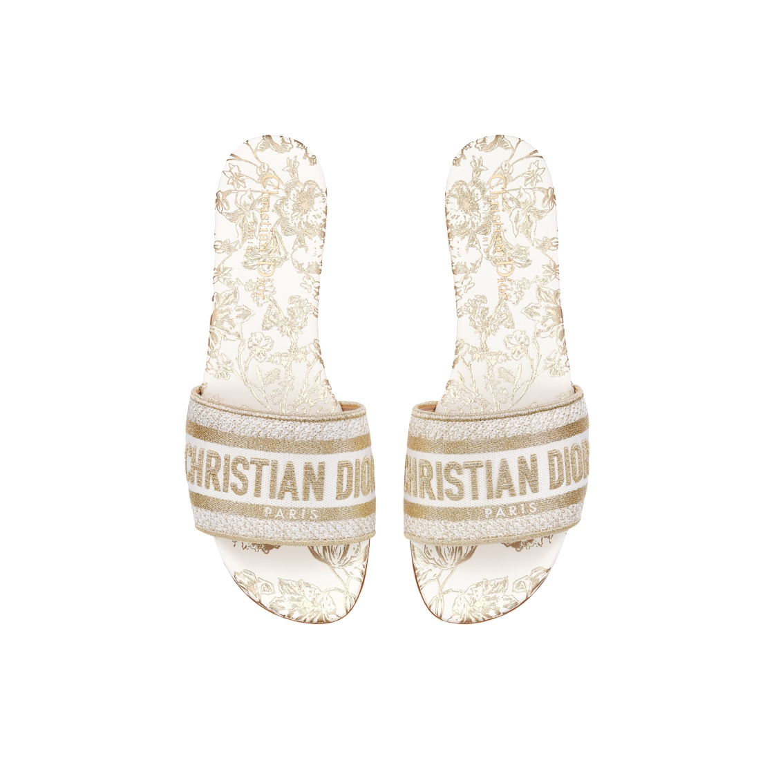 (W) Dior Dway Slide Cotton Embroidered with Metallic Thread And Millefiori Motif White Gold