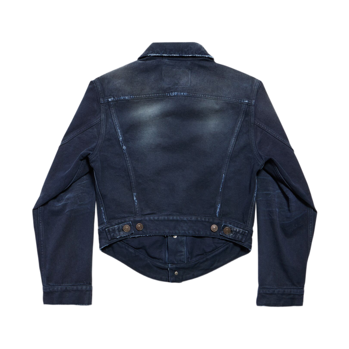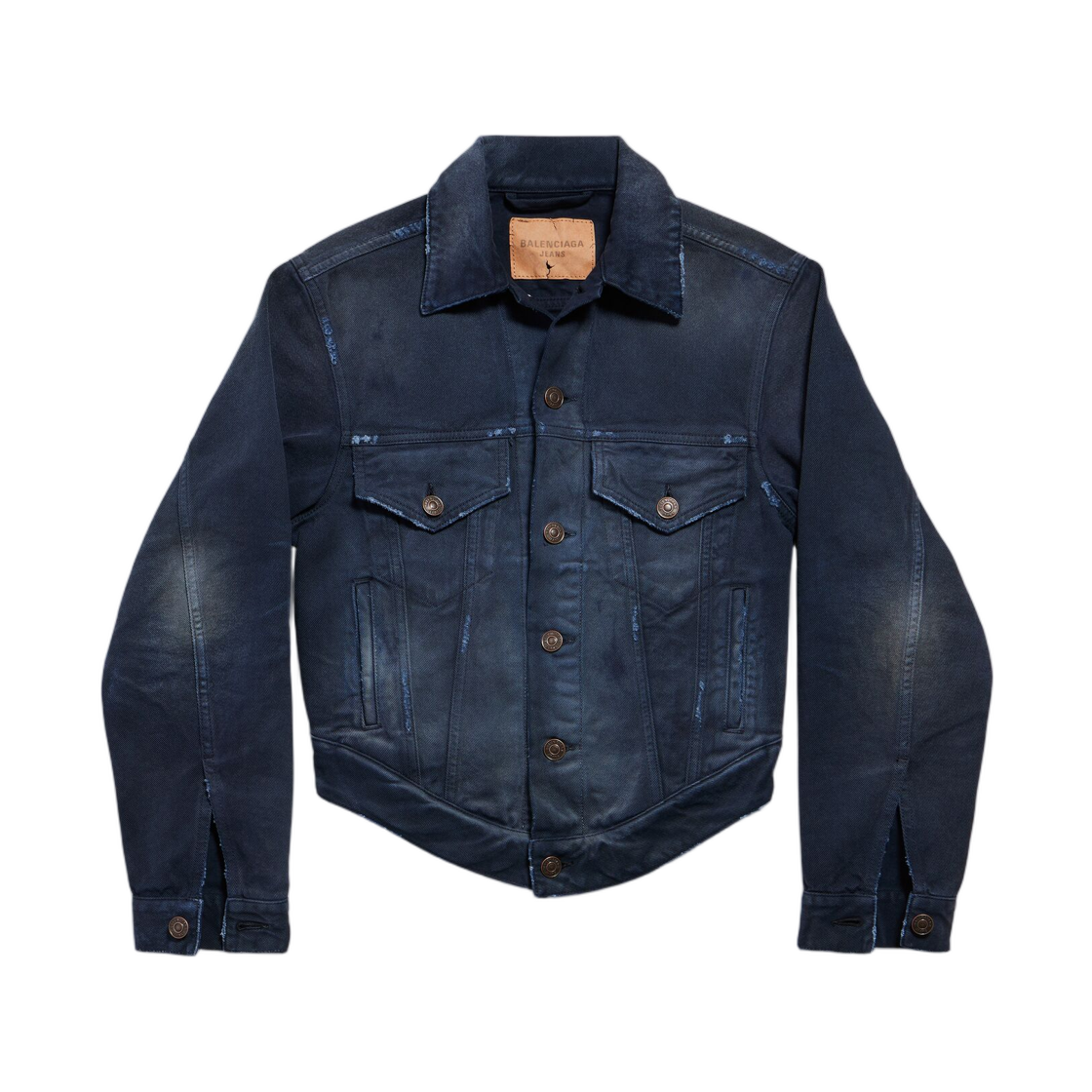 (W) Balenciaga Curved Waistband Jacket Navy Dirty Dark Blue