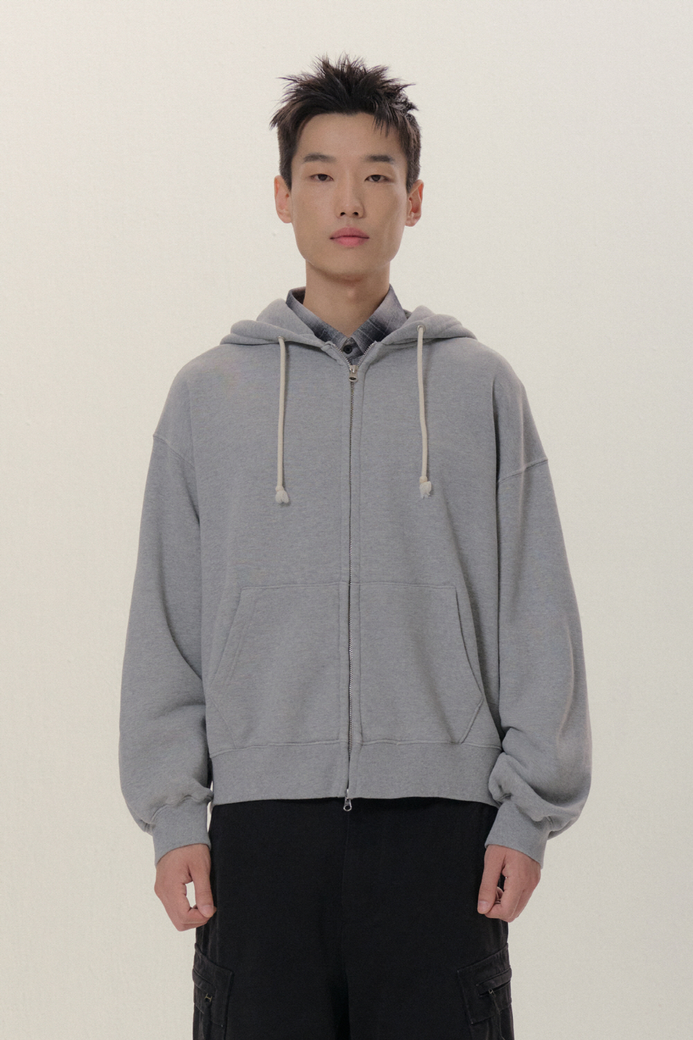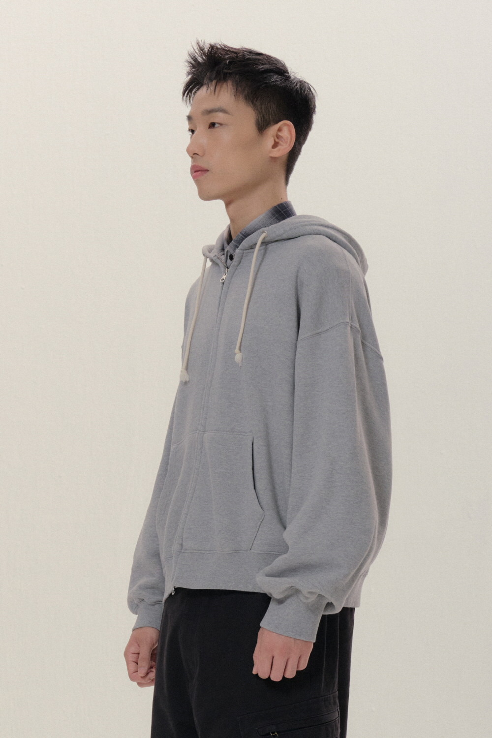 - 루즈한 암홀과 적당히 크롭한 실루엣의 후드 집업 입니다. - 무게감이 적당한 헤비코튼 원단을 사용하였습니다.(지난 시즌 후드집업보다 가볍습니다.) - 세탁후 수축방지를 위하여, 바이오 워싱 작업을 진행 하였습니다. - 2WAY zipper 를 사용하여 다양한 연출이 가능합니다 .