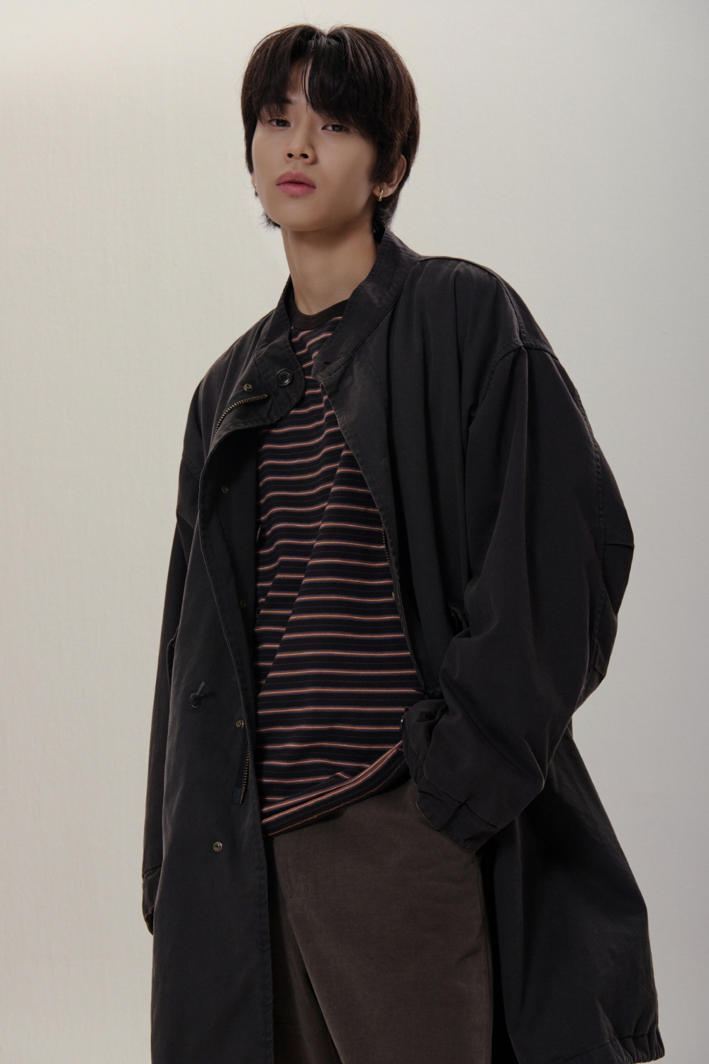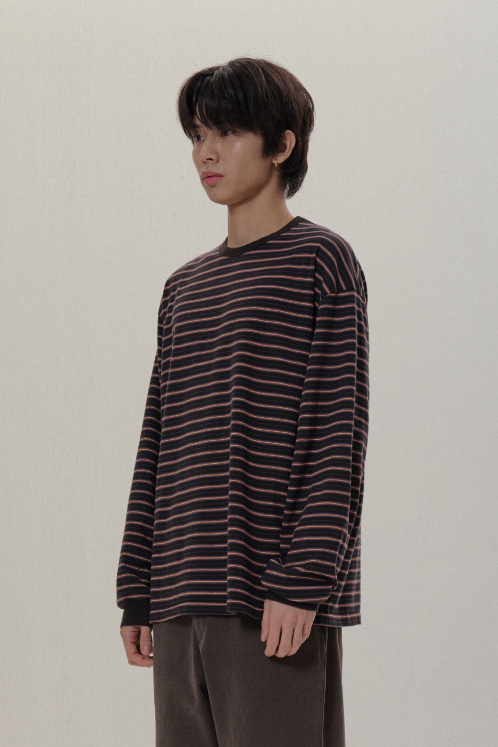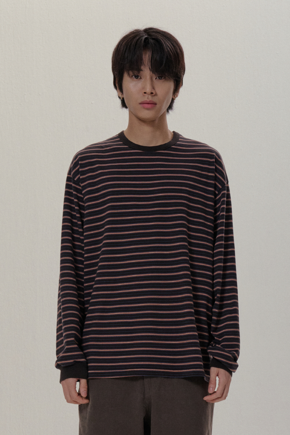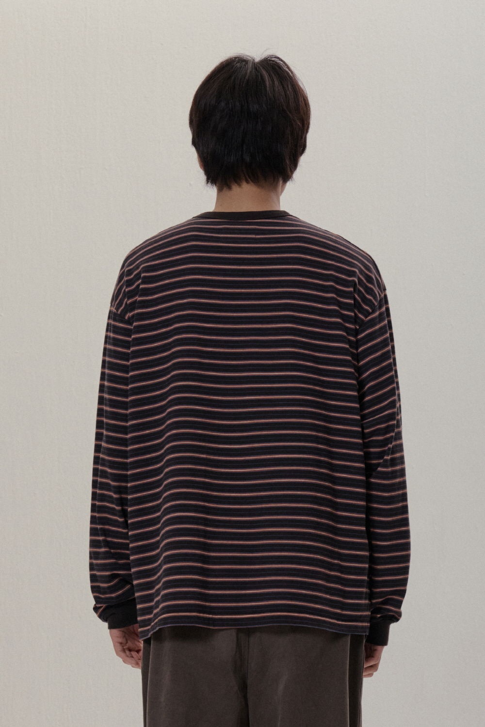 - 루즈한 실루엣의 롱슬리브 입니다. - 16'S 두께감의 코튼 100% 스트라이프 원단을 사용 하였습니다. - 세탁후 수축방지를 위하여, 사전 워싱 작업을 진행 하였습니다.