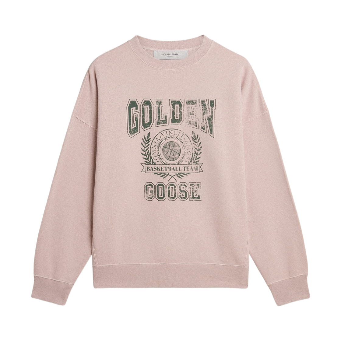 Golden Goose Round Neck Sweatshirt with Green Logo Print Old Rose