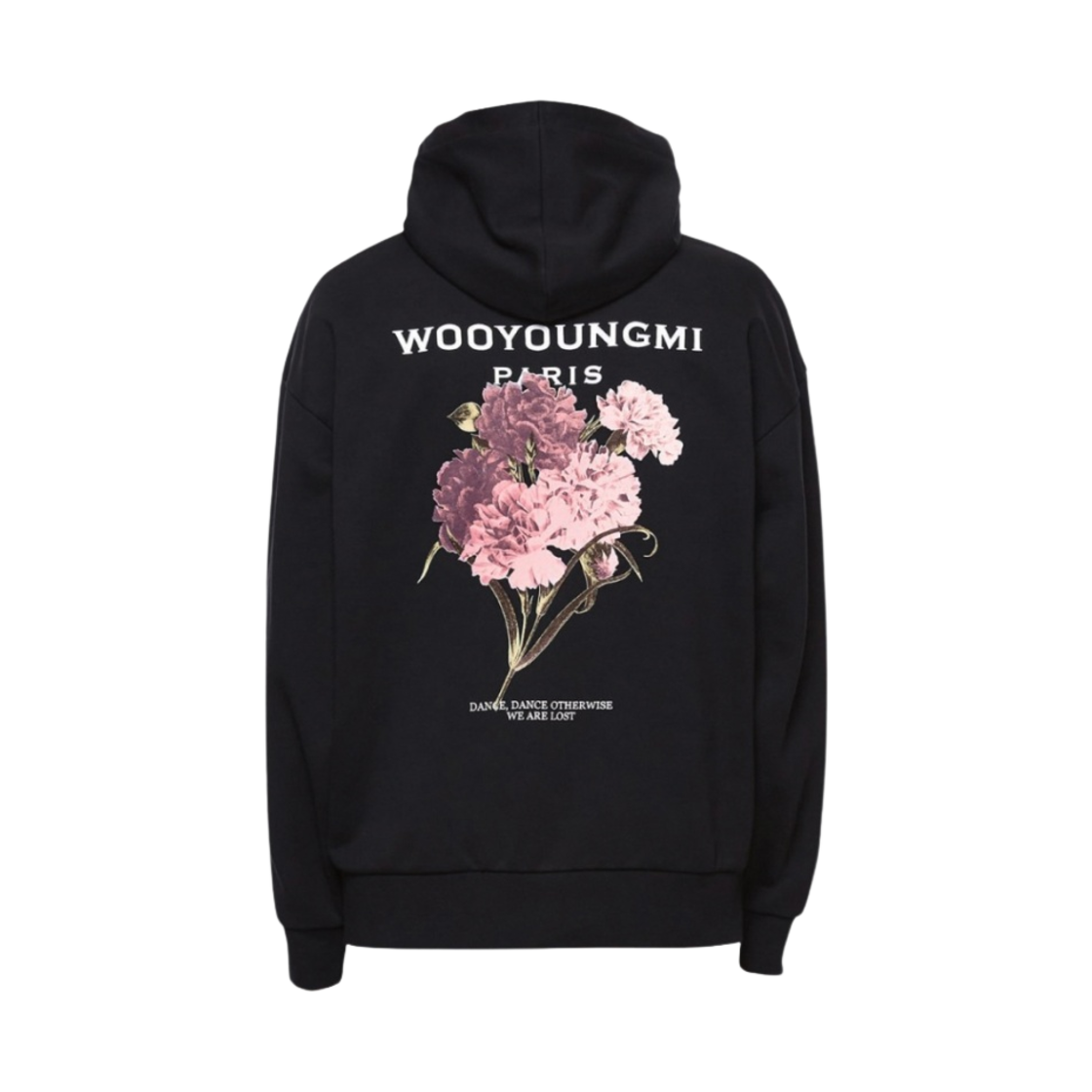 Wooyoungmi Flower Print Back Logo Hoodie Black - 21SS