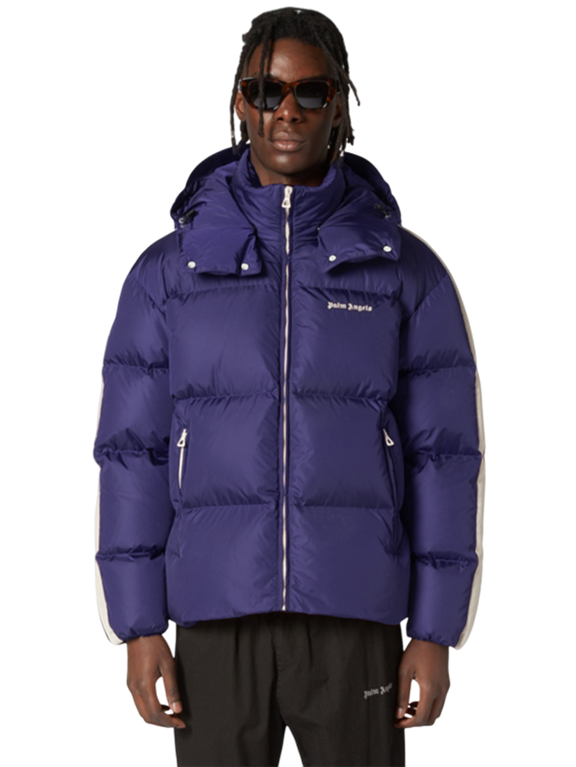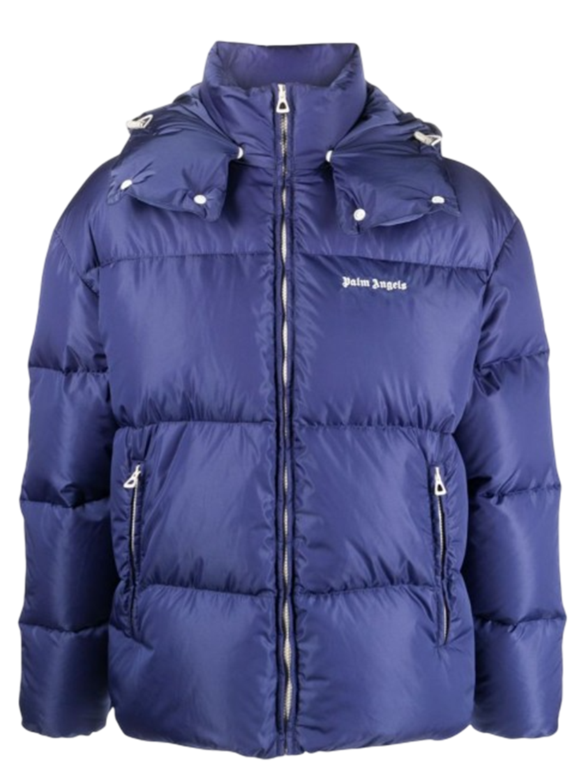 Palm Angels Hooded Track Down Jacket - Navy