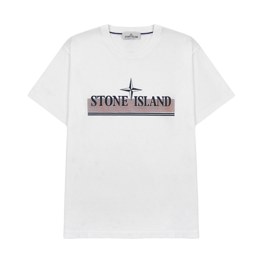 Stone Island 2NS92 30/1 Cotton Jersey Tricromia One Print Garment Dyed T-Shirt White - 22SS