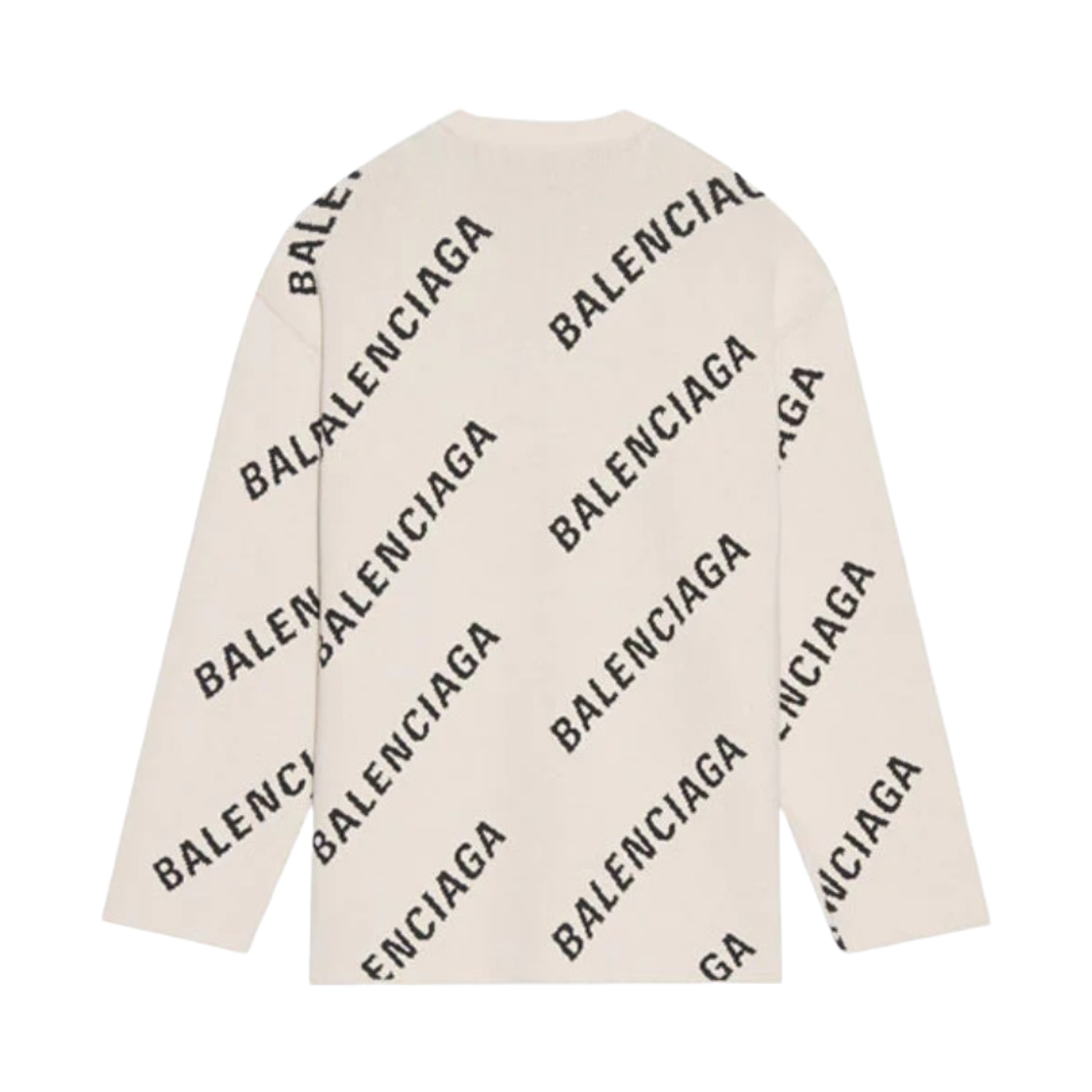 발렌시아가 올오버 로고 크루넥 니트 화이트