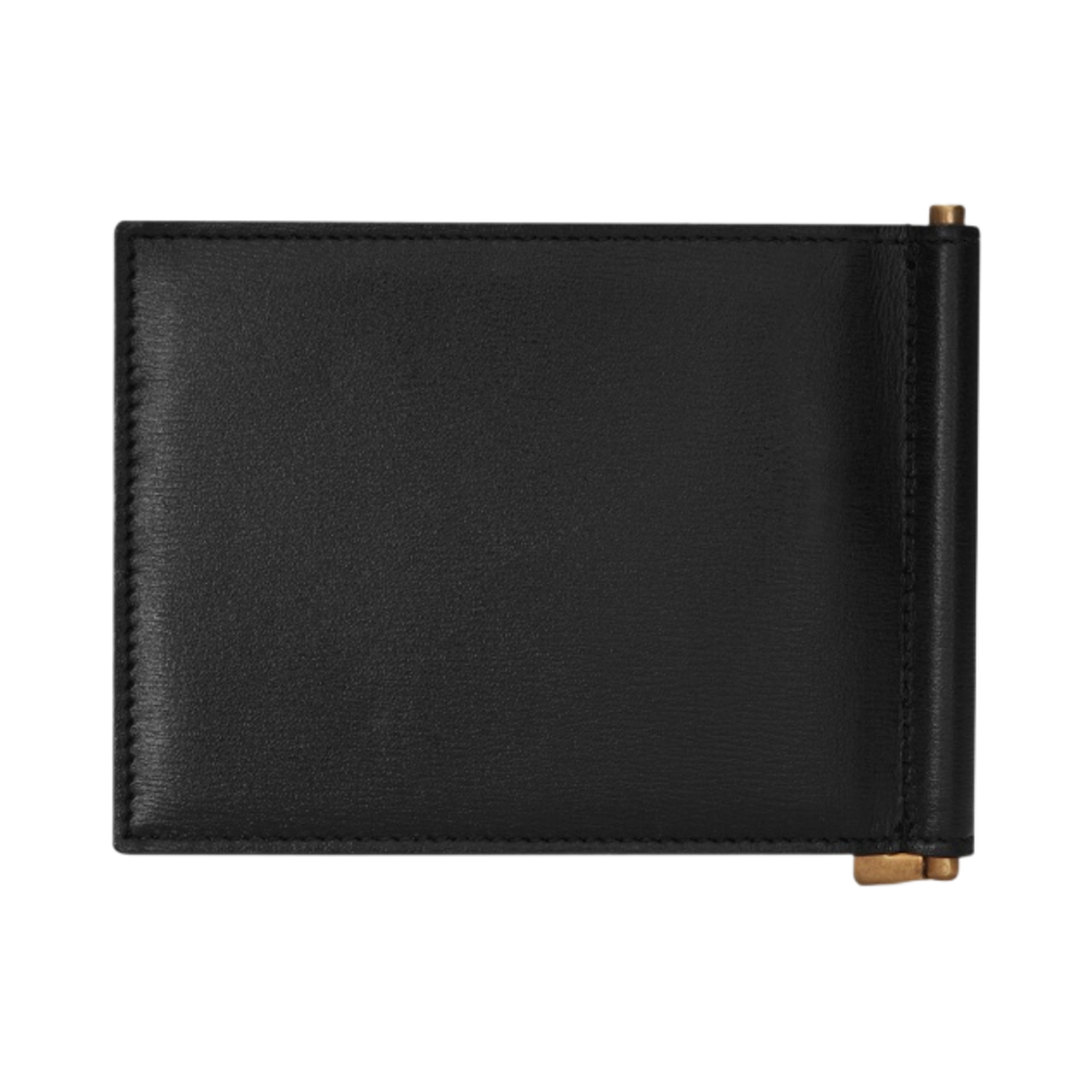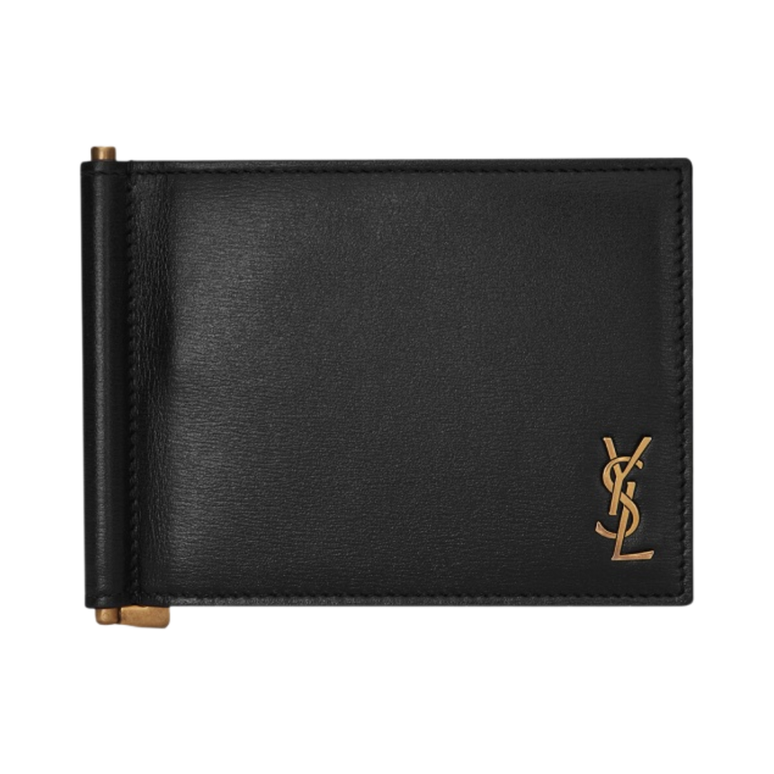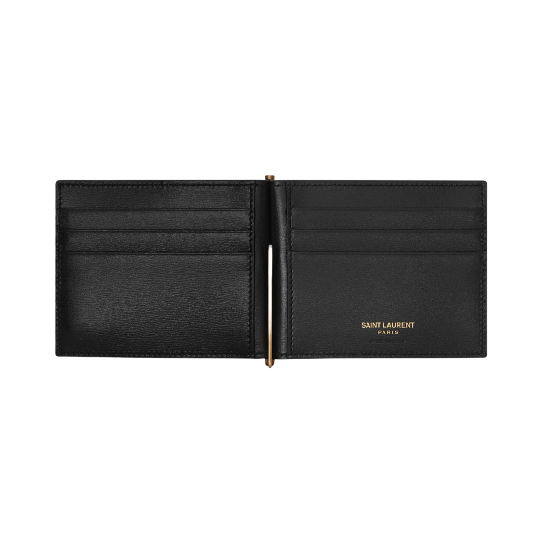 Saint Laurent Tiny Cassandre Bill Clip Wallet In Shiny Leather Black