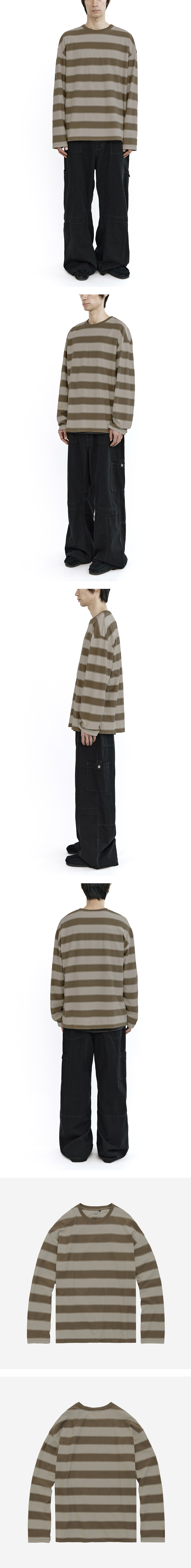 loosed striped long sleeves - 볼드한 스트라이프 패턴 - 가먼트 워싱으로 구현한, 자연스럽고 부드러운 색감 - 드레이퍼리한 실루엣 - 여유로운 착용감 *모델: 170 중반, 마른 체형 / 3사이즈 착용