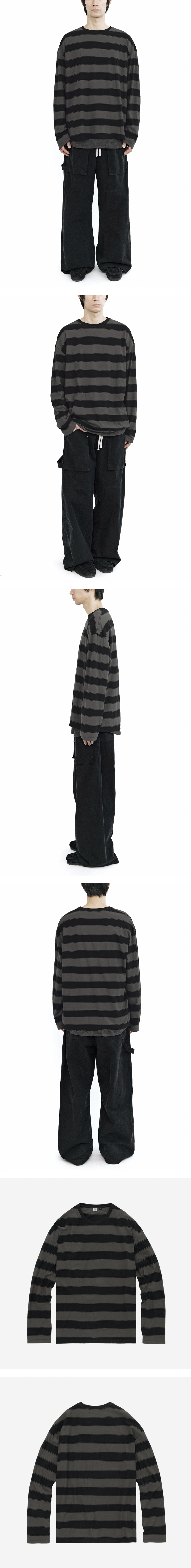 폴리테루 루즈드 스트라이프 롱 슬리브 볼드 차콜