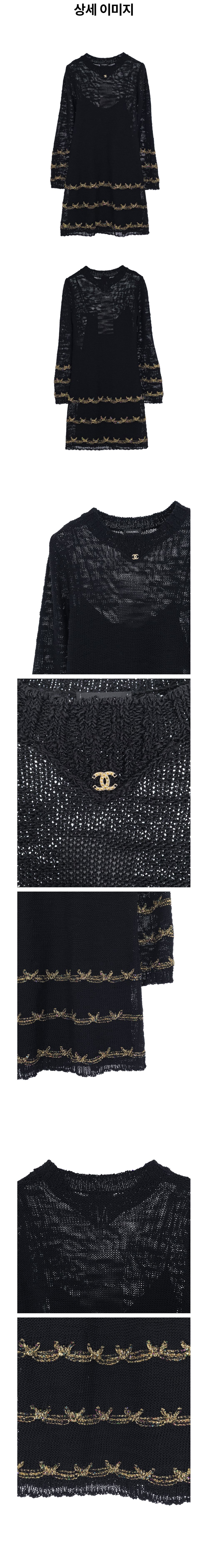 샤넬 25A 공방컬렉션 크로쉐 원피스 36 블랙/골드(5ET1909)