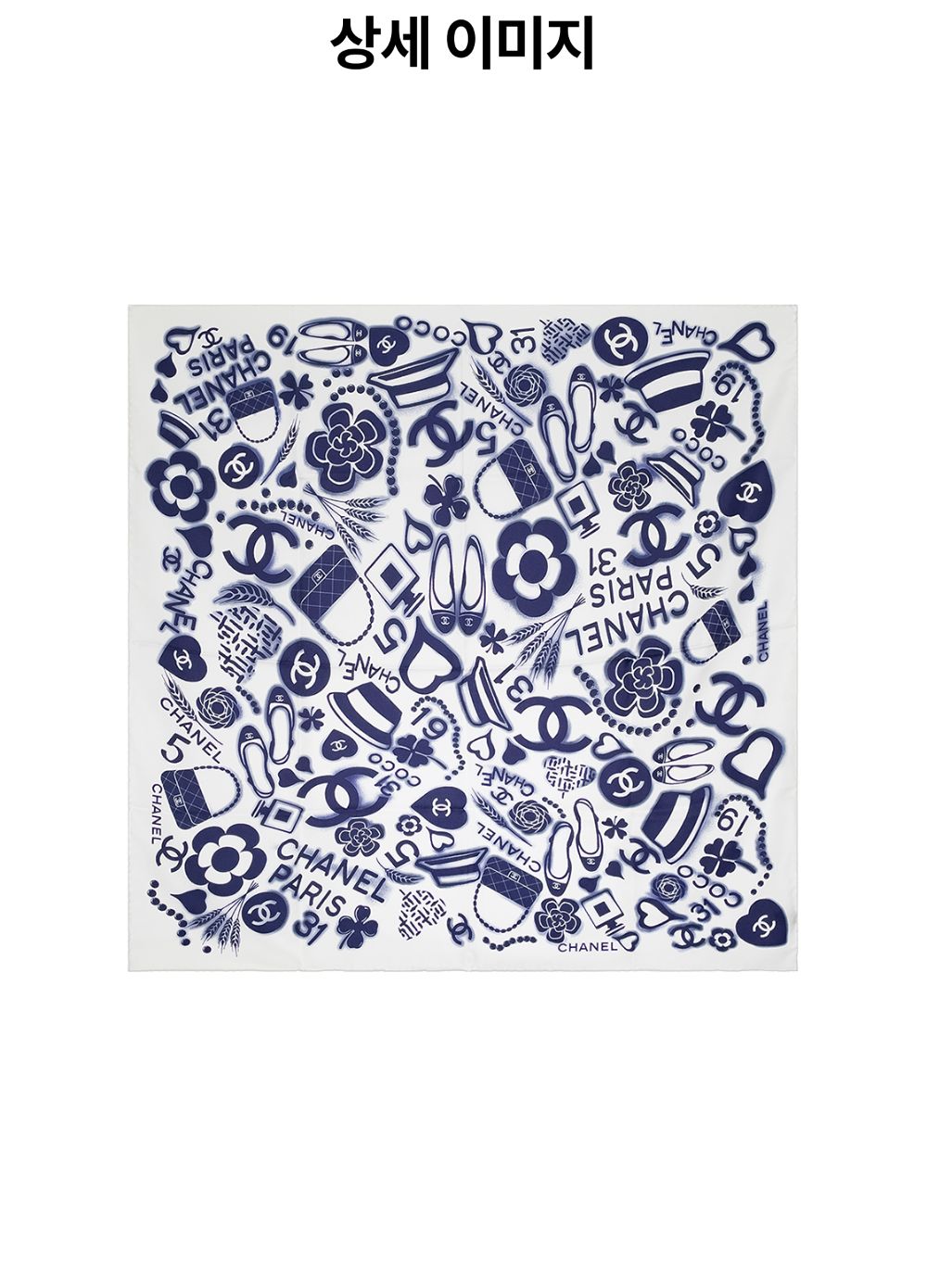 샤넬 20V 심벌즈 스퀘어 스카프 90 아이보리/블루(5ET1727)