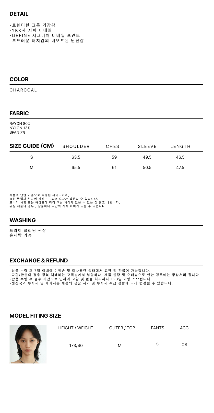 디파인 (W) 네오프렌 크롭 후드 집업 차콜