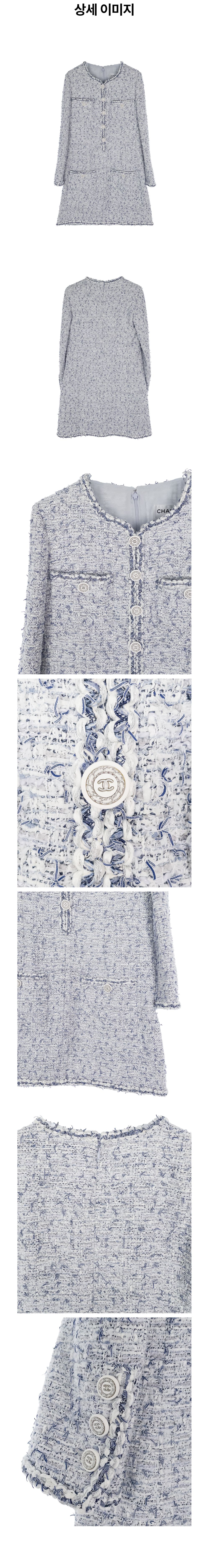 샤넬 19C 4포켓 롱슬리브 트위드 원피스 36 라이트블루 (5ET1916)