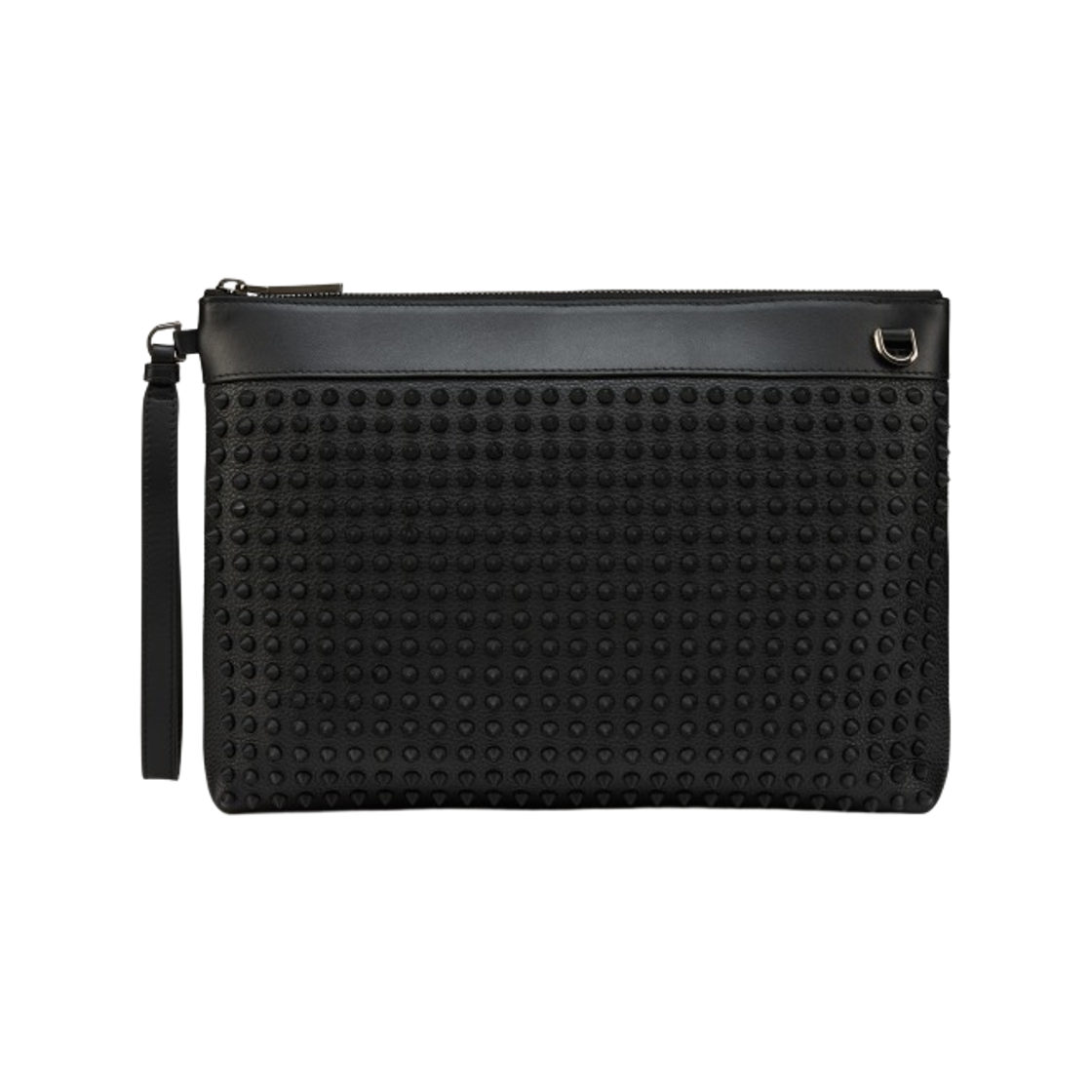 크리스찬 루부탱 펑키 그레인드 카프 레더 앤 스파이크 파우치 블랙