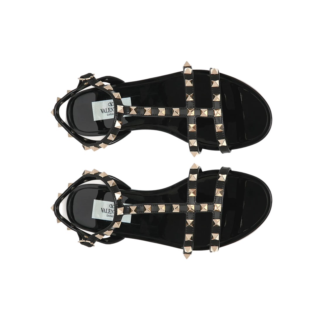 (W) 발렌티노 락스터드 플랫 러버 샌들 블랙
