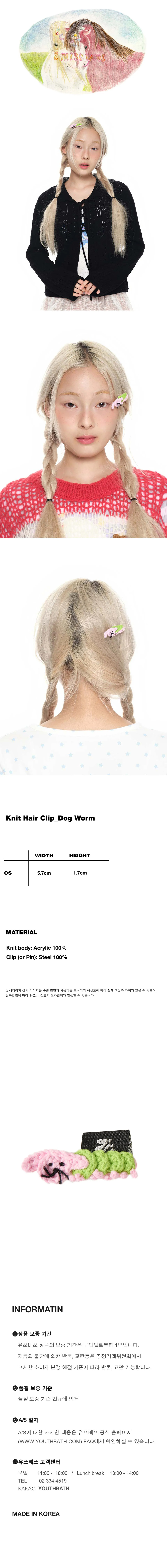 유쓰배쓰 니트 헤어 클립_도그 웜