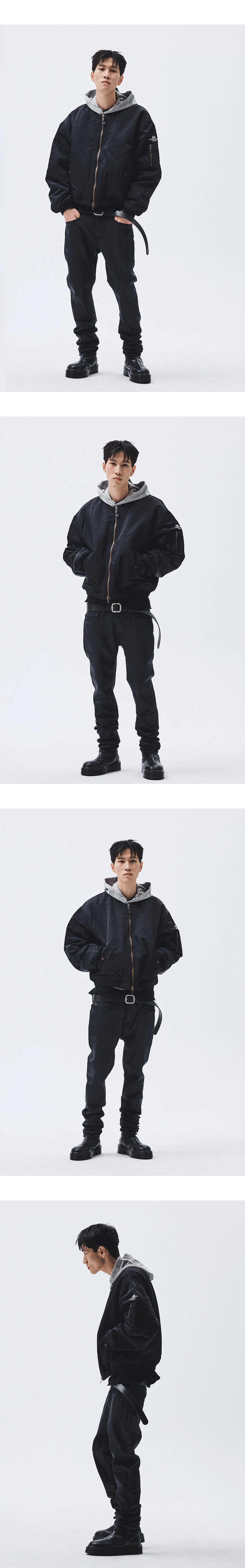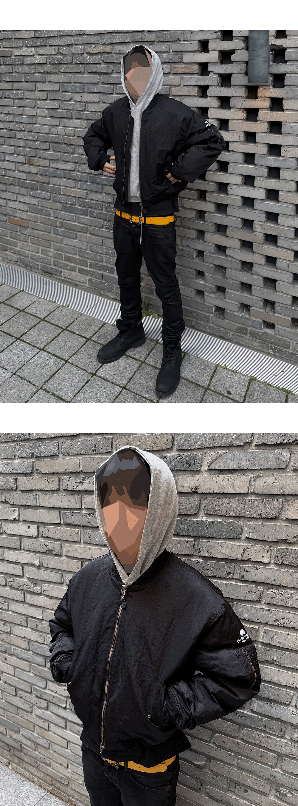 Model 1 spec 184cm 마른편 (Size 2 착용) Model 2 spec 178cm / 70kg ( Size 1 착용) 아우터 - Mu.144 Classic Logo Basic MA-1 Black - Size 1 상의 – Mu.96 Anti Fxxking Logo Play Light Cropped Hoodie Melange Gray – Size 1 하의 – Black Mamba Slim Fit Red Stitch Wax Coating Jeans Rumba Red – Size 1 ACC - 25FW Double Floral Buckle Plain Leather Belt Yellow