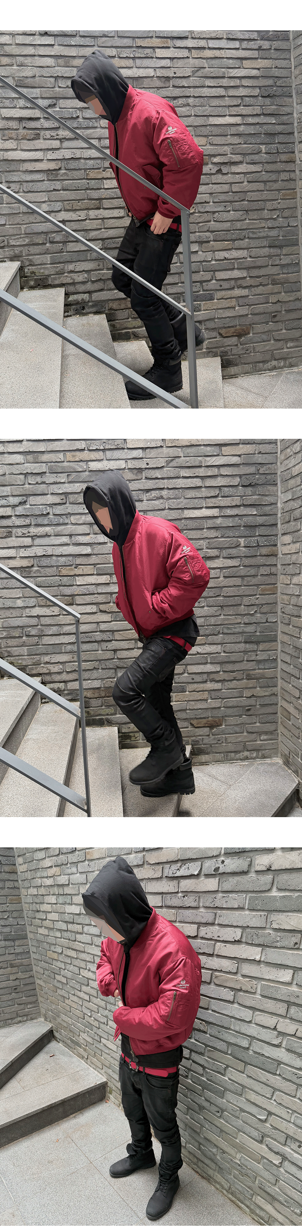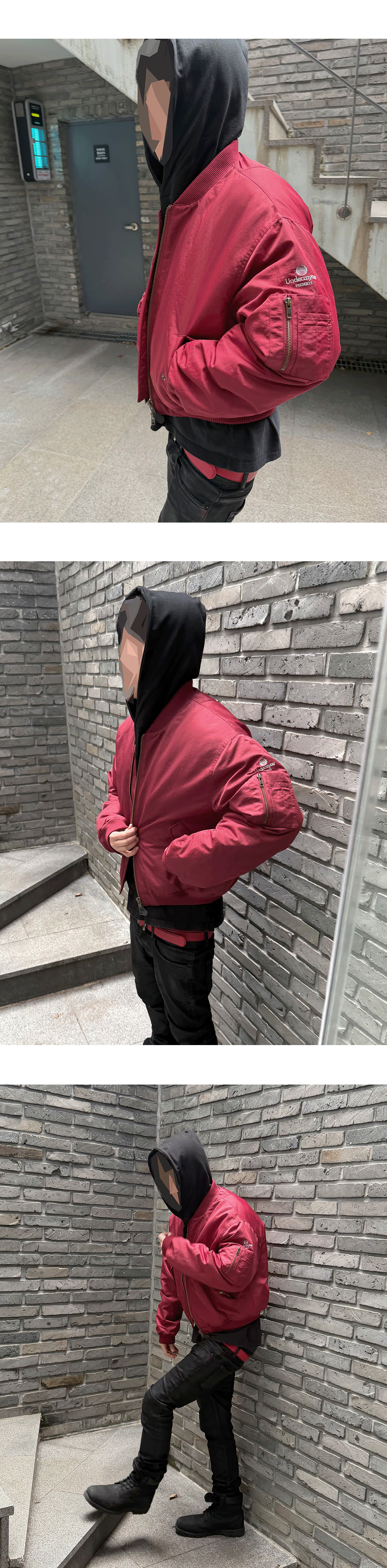 Model spec - 178cm / 70kg ( Size 1 착용) 아우터 – Undermycar Mu.144 Classic Logo Basic MA-1 Burgundy - Size 1 상의 - Mu.96 Anti Fxxking Logo Play Light Cropped Hoodie Black – Size 1 하의 - Black Mamba Slim Fit Red Stitch Wax Coating Jeans Rumba Red – Size 1 ACC - 25FW Double Floral Buckle Plain Leather Belt Red