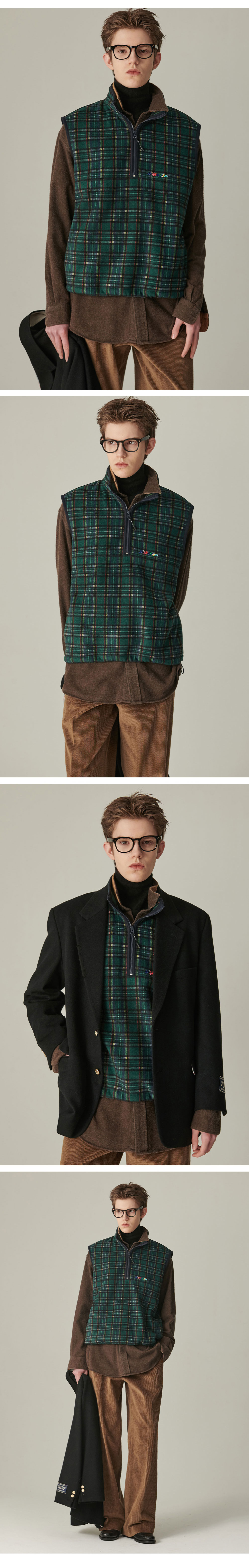 ㆍ컬렉션 라인의 유니크한 체크 배색과 따뜻한 플리스 소재로 보온성을 높인 하프집업 베스트 ㆍ하프넥 디자인과 스트링 디테일로 핏과 보온감까지 세심하게 조절 가능 ㆍ단독 착용은 물론, 이너/아우터로도 활용 가능한 레이어링 최적 아이템 ㆍ가벼운 착용감과 포근한 플리스의 조합, 간절기부터 겨울까지 활용도 높은 아이템 ㆍ포인트 있는 체크 패턴의 디자인으로 아웃도어부터 데일리룩까지 폭넓게 연출 가능 유니섹스 상품으로 제작 ㆍ여성분들은 M사이즈 착용 권장
