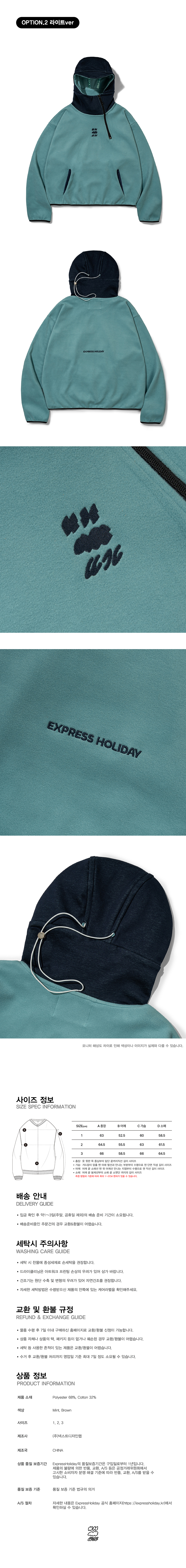 익스프레스 홀리데이 클라우드 심볼 플리스 아노락 민트